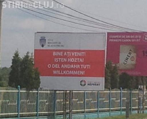 Maghiarii fac plangere penala pentru furtul panoului publicitar cu textul in limba maghiara, montat in Floresti