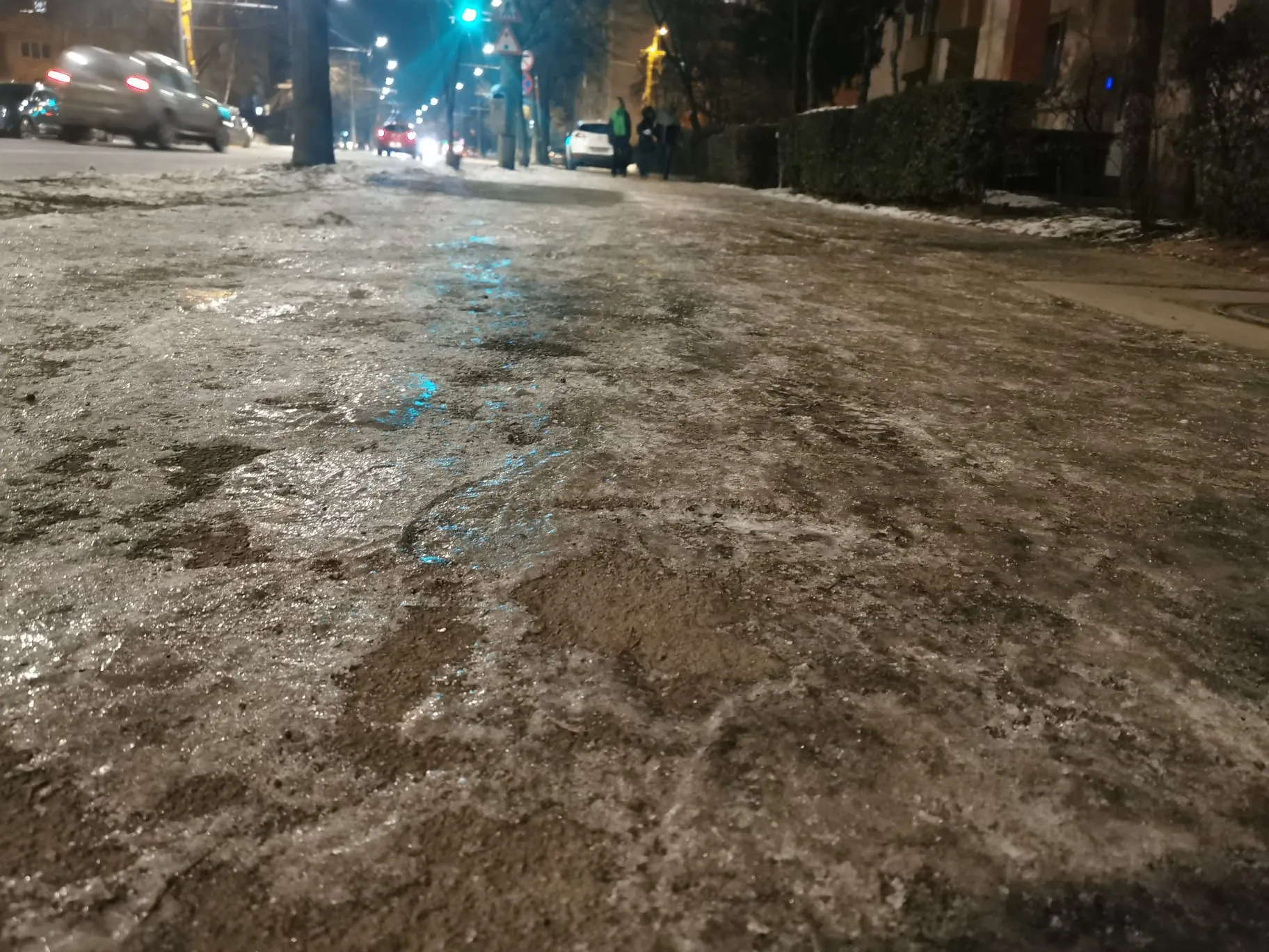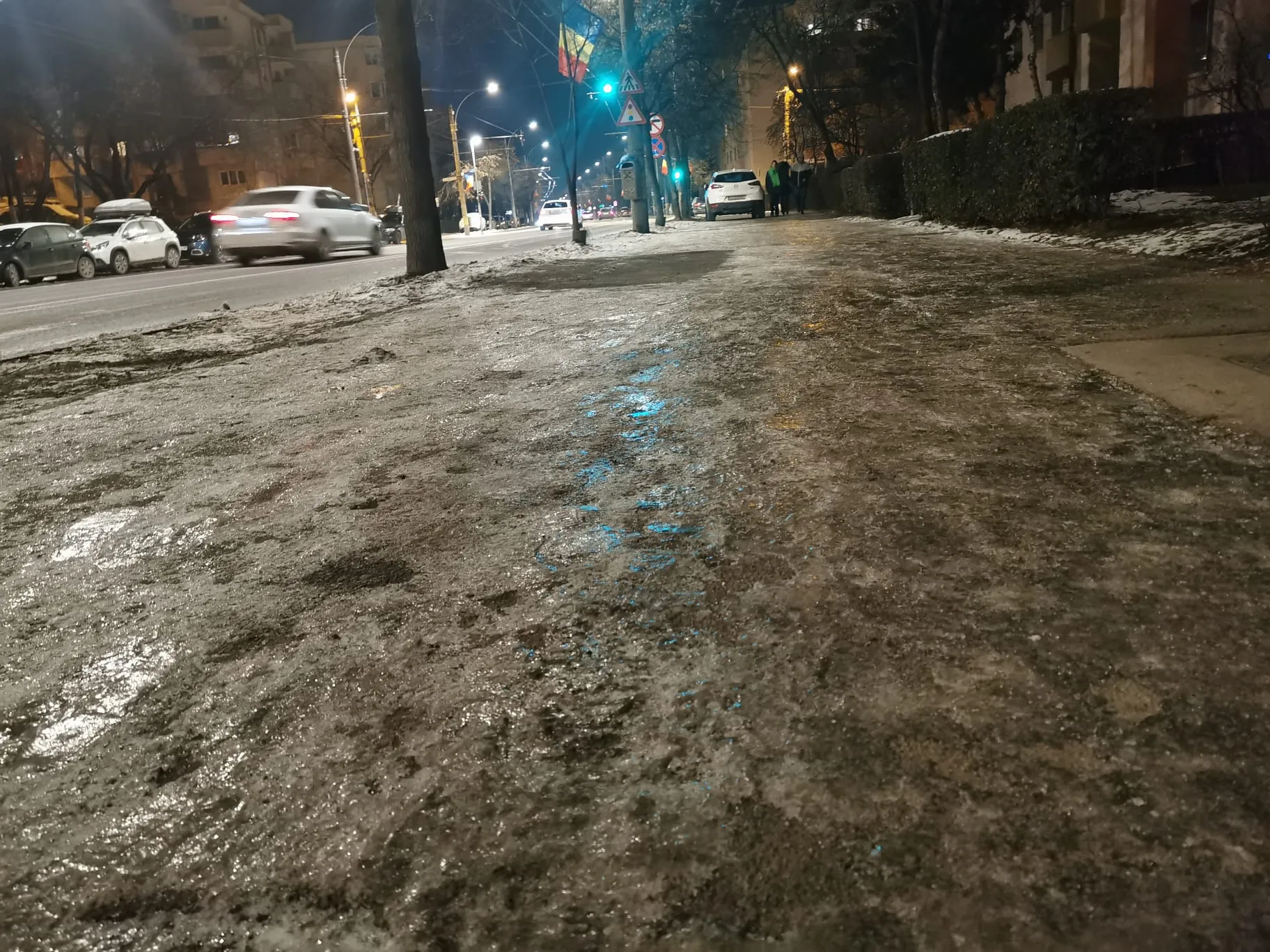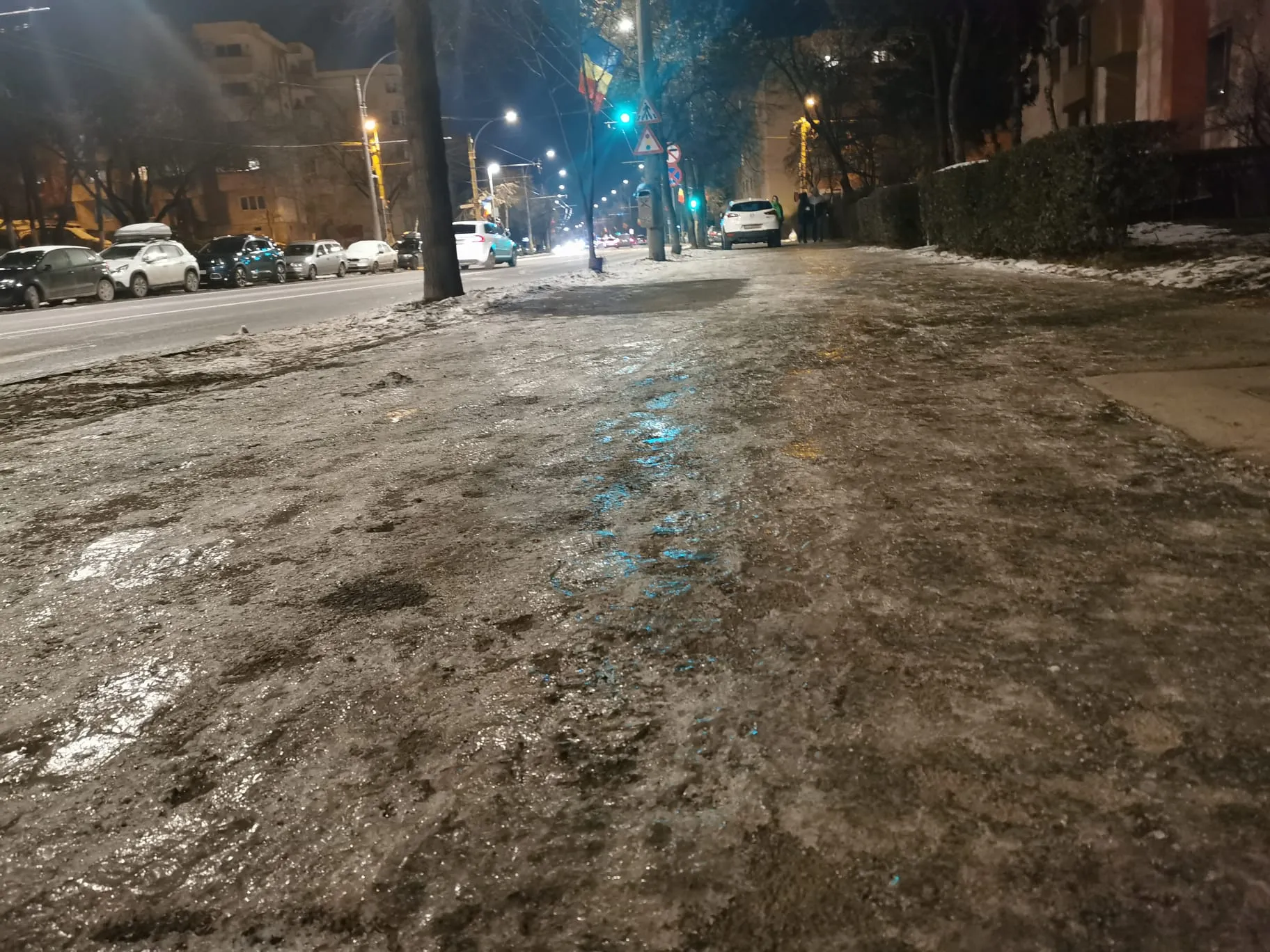 Trotuarele din Gheorgheni, de pe Bulevardul Nicolae Titulescu, sunt pline cu gheață la câteva zile de la venirea înghețului.