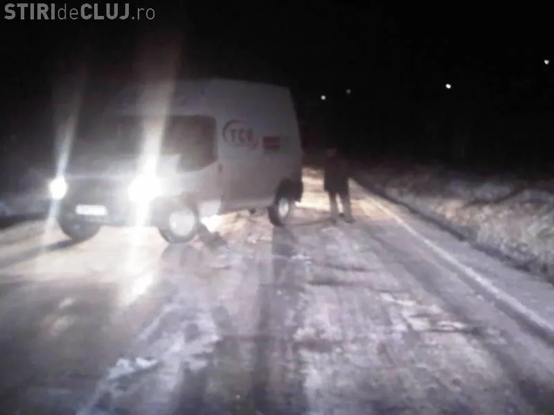 Mai multe autoturisme si un camion, blocate din cauza poleiului in zona Cabana Leghia. UPDATE Drumul a fost curatat