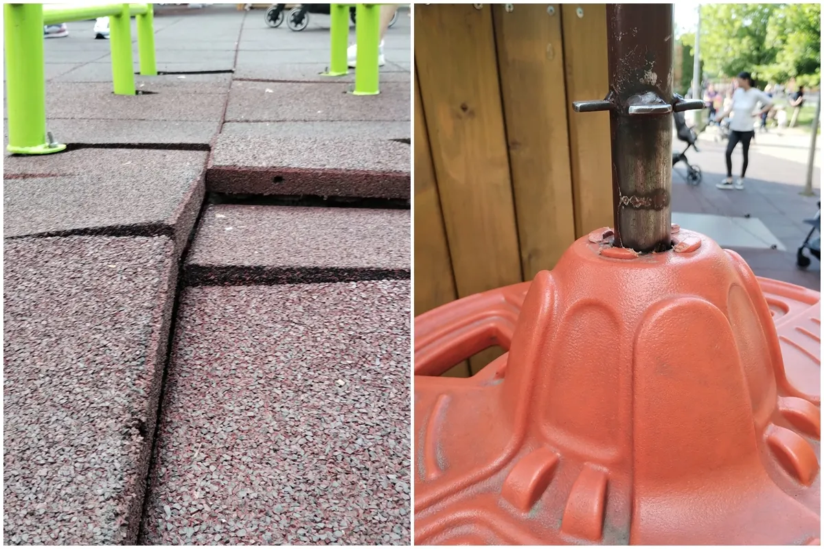 „Copilul meu s-a lovit și zgâriat la un picior, pe un astfel de echipament stricat.