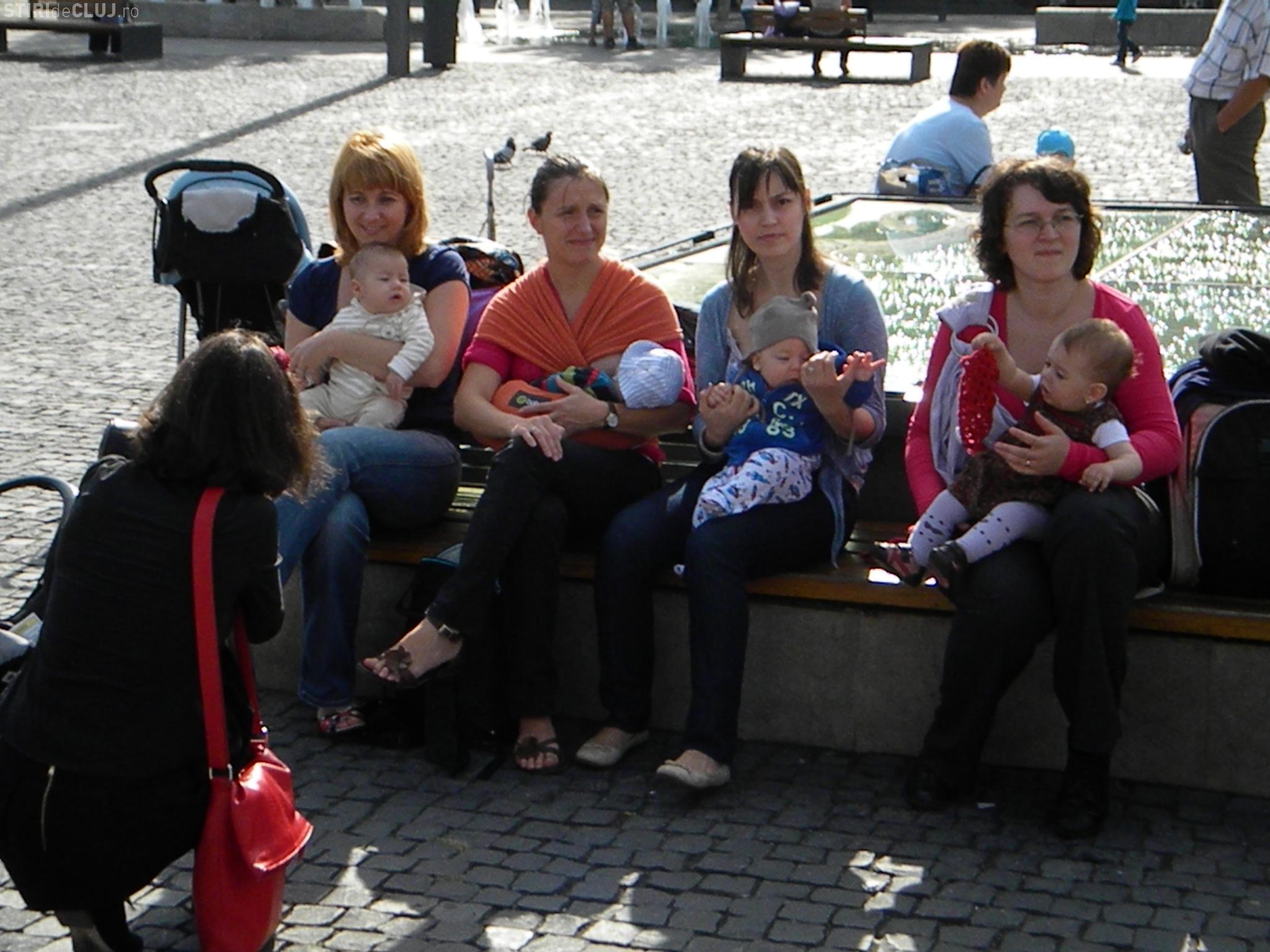 Circa 30 de mămici, care susțin alăptatul la sân, s-au adunat în Piața Unirii, sâmbătă dimineața, în cadrul campaniei ”Marea provocare a alăptării 2012”.
