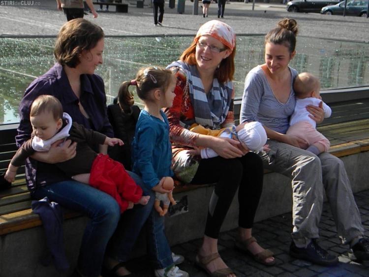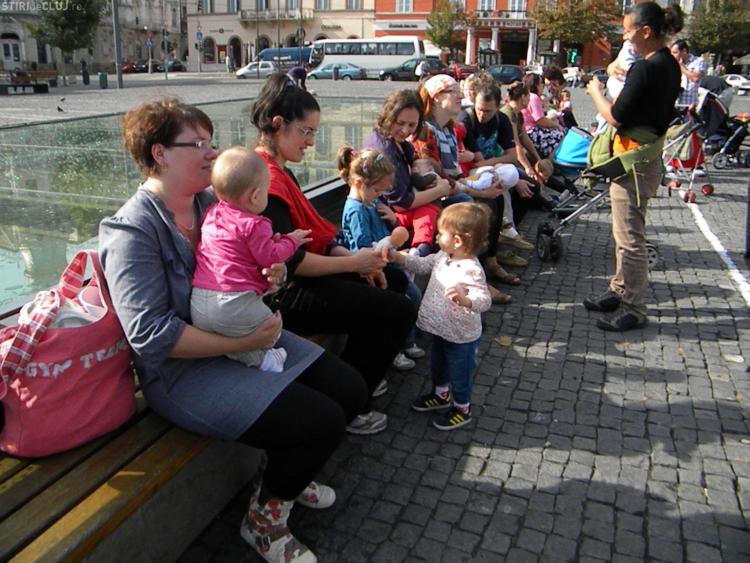 Mămicile din Cluj și-au alăptat copiii în Piața Unirii, sâmbătă dimineața - VIDEO