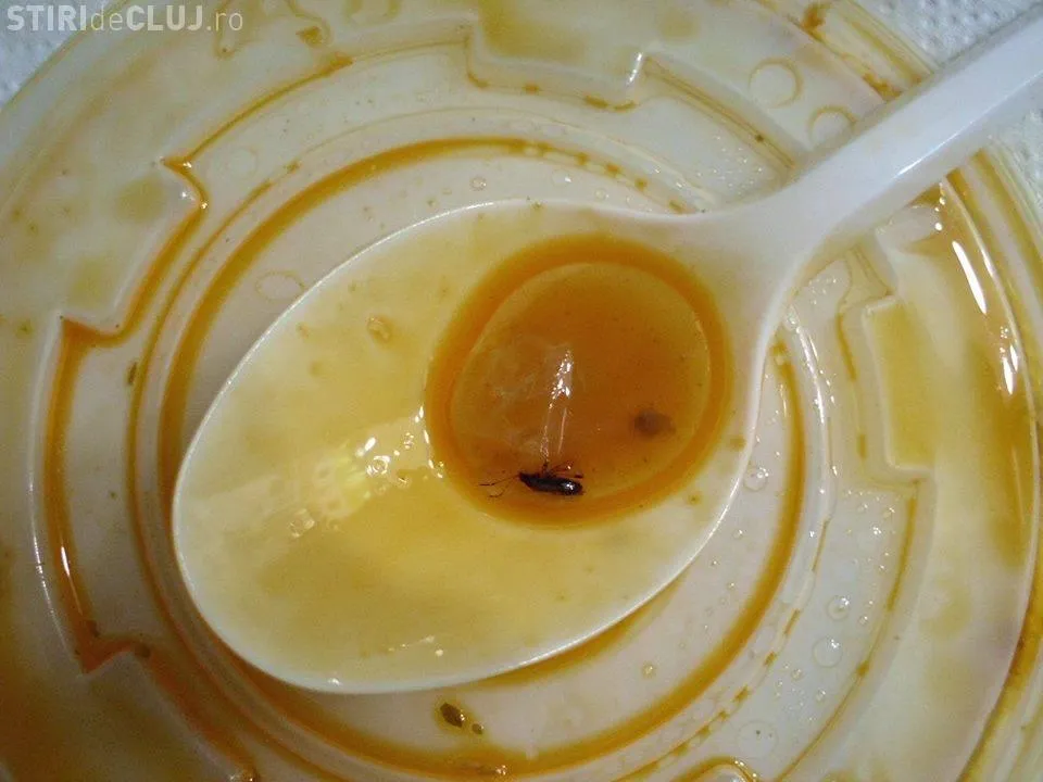 Clujeanca a păstrat bonul cu care a cumpărat mâncarea și a făcut poze cu insectele găsite, dar nu a fost luată în seamă.