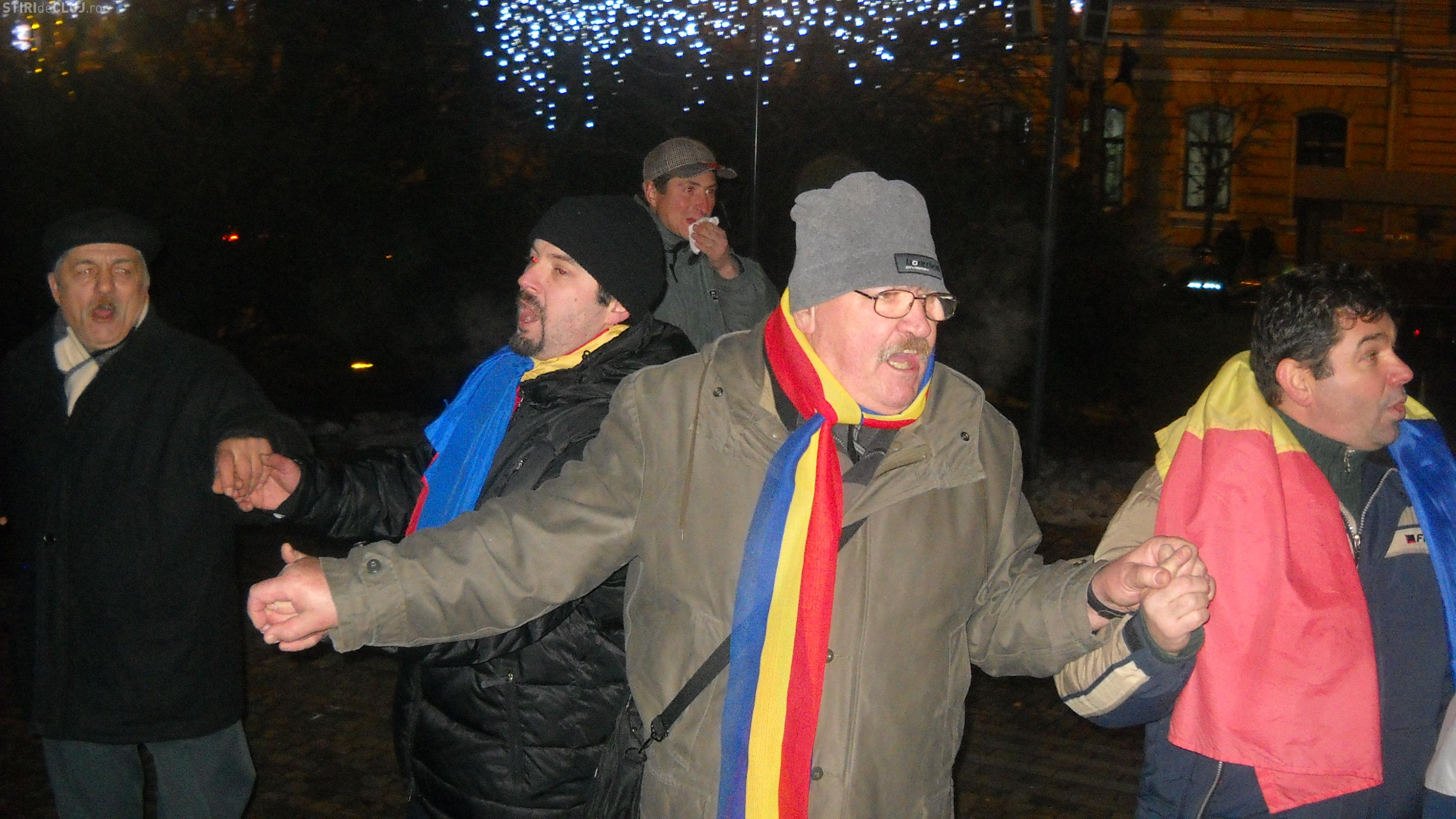 Protestatarii au marcat implinirea a 153 de ani de la Unirea Principatelor Romane, Moldova si tara Romaneasca si au cantat si au jucat Hora Unirii in piata Avram iancu.