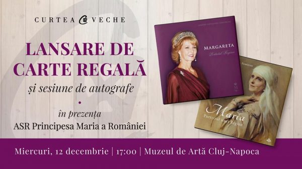 Cărțile ”Maria. Portretul unei Regine” și ”Margareta. Portretul Reginei” vor fi lansate la Cluj miercuri, 12 decembrie, începând cu ora 17:00, în prezența Alteței Sale Regale Principesa Maria, la Muzeul de Arta Cluj-Napoca.