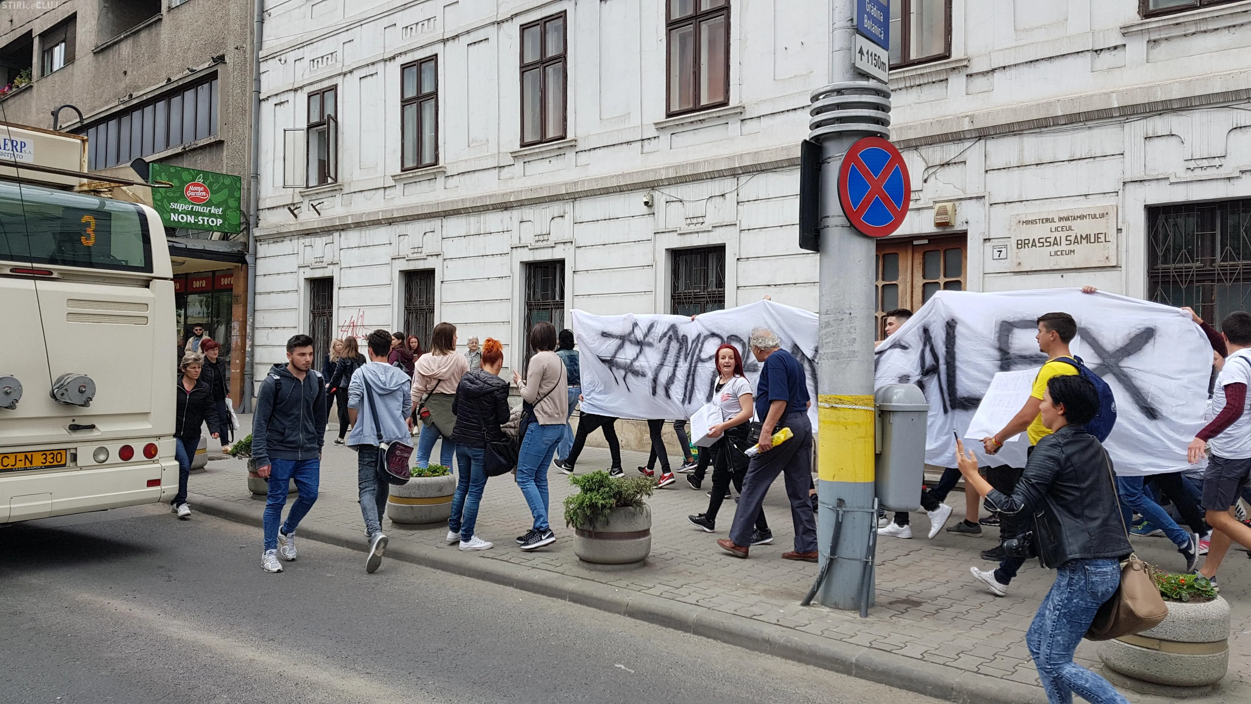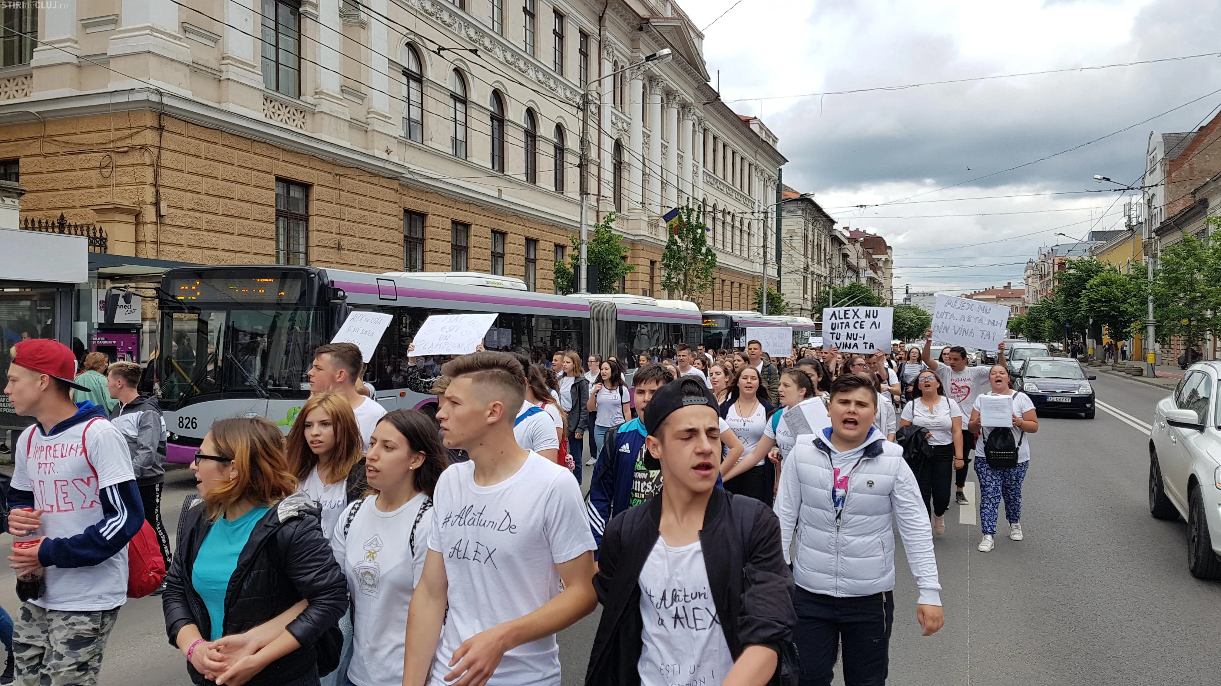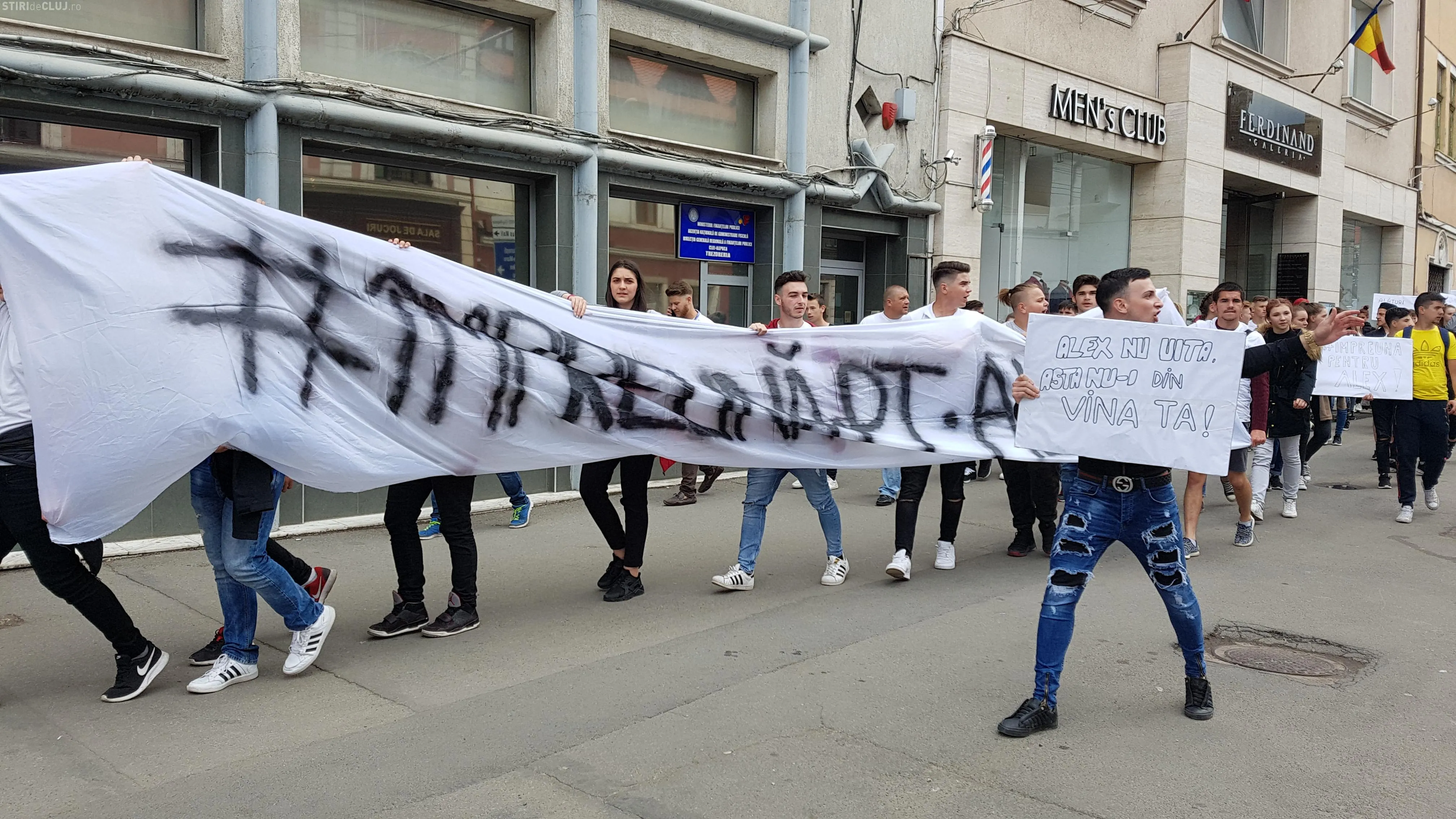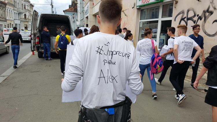Tinerii au avut pancarte și un banner uriaș pe care au scris #împreunaptalex. Aceștia au scandat lozinci și le-au cerut clujenilor să doneze, având urne mobile la ei. ”Suntem prieteni cu Alex de la școală, de la Liceul ”Edmond Nicolau”, din Florești sau suntem prieteni cu fratele lui. Noi toți suntem familia lui”, a spus una dintre tinere.