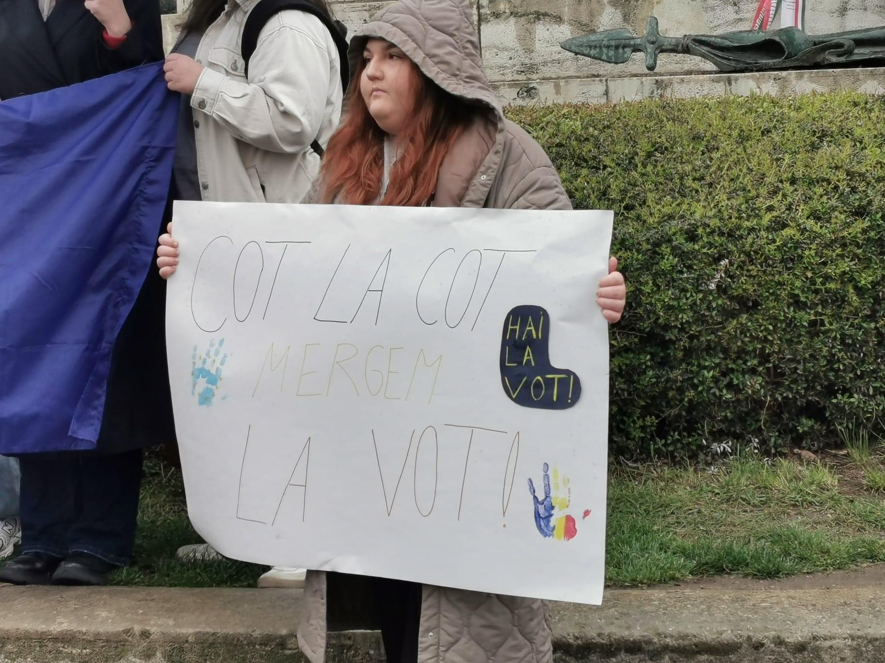 Ei au pornit din Piața Unirii și au parcurs un traseu prin oraș scandând mai ales „Hai la vot!”, „Noi votăm România, apărăm democrația!” și „România, nu uita, Europa-i casa ta”