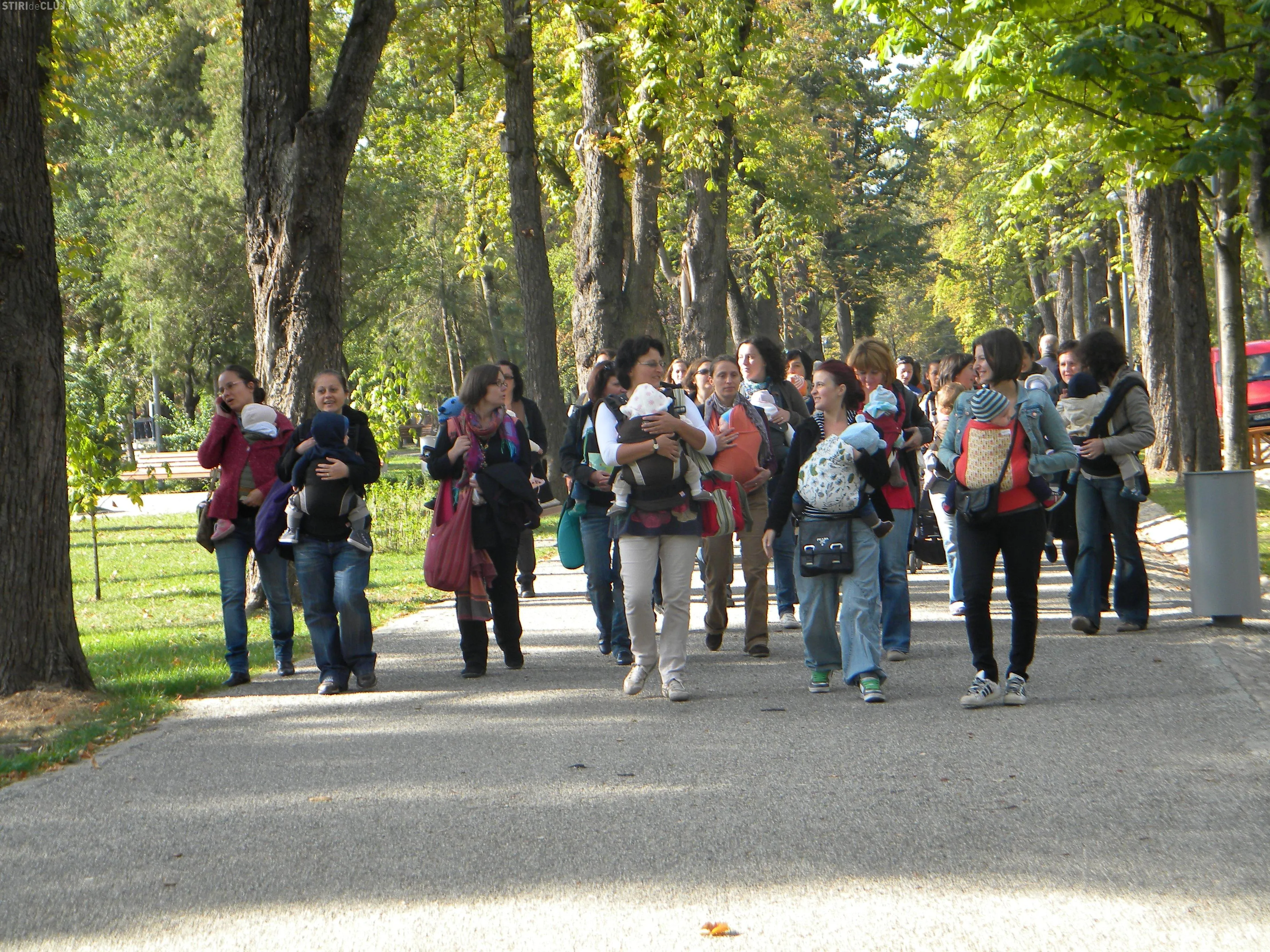 Circa 40 de mămici au participat de la ora 11.00 la Marșul bebelușilor purtați, pe traseul Parcul Central - Piața Unirii.