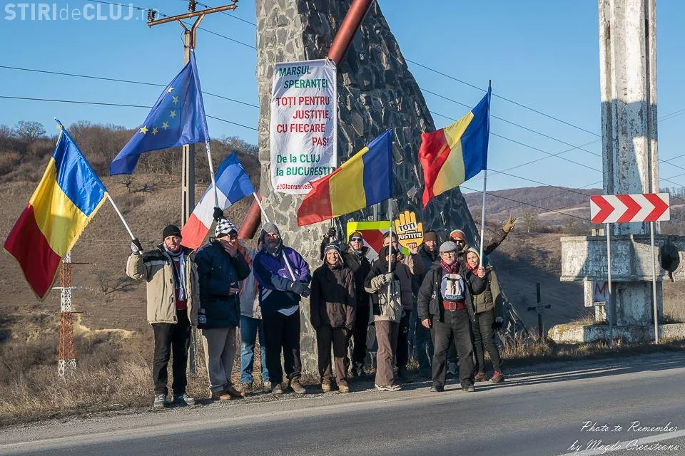 ”Am incheiat a cincea zi din Marsul Sperantei. Am ajuns langa Rupea insotiti de protestatari din Sighisoara si de un grup de bucuresteni. S-au alaturat grupului de baza inca trei participanti care vor veni pana in Bucuresti. Domnii George Bratu, Valeriu Borsan si Ionel Popa. In acest moment grupul permanent numara 10 membrii. Luni intentionam sa ajungem cat mai aproape de Brasov fara a intra in oras. Vremea e Ok desi dimineata erau -8 grade si pe parcursul zilei nu au fost temperaturi pozitive. Moralul creste de la o zi la alta. E o implicare colectiva fantastica. Nu ne simtim singuri, suntem inconjurati in permanenta de prieteni. Sa auzim de bine", relatau duminică participanții la marș.