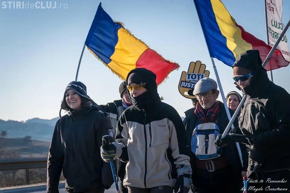”Duminică ne-am alaturat si noi, doar pentru 3 ore, grupului extraordinar care a plecat sa strabata pe jos drumul de la Cluj la Bucuresti. O atmosfera optimista, chiar daca picioarele tremura un pic din cauza efortului. Soferii ne incurajeaza cu farurile, cu claxoanele, unii se opresc sa ne intrebe daca avem nevoie de ceva, altii sa ne spuna ca sunt alaturi de noi. Tara asta are atatia oameni minunati!... Solidaritatea e cel mai frumos si pur si neconditionat sentiment”, a scris pe Facebook Magda Creosteanu.