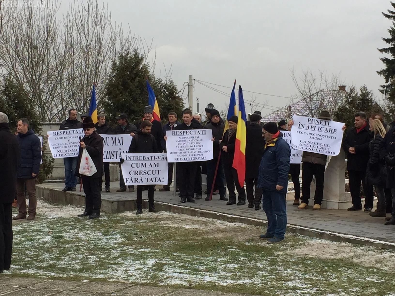 Aceștia sunt nemulțumiți de modificările aduse legilor pentru răniţii şi urmaşii eroilor Revoluţiei, care îi privează de anumite drepturi.