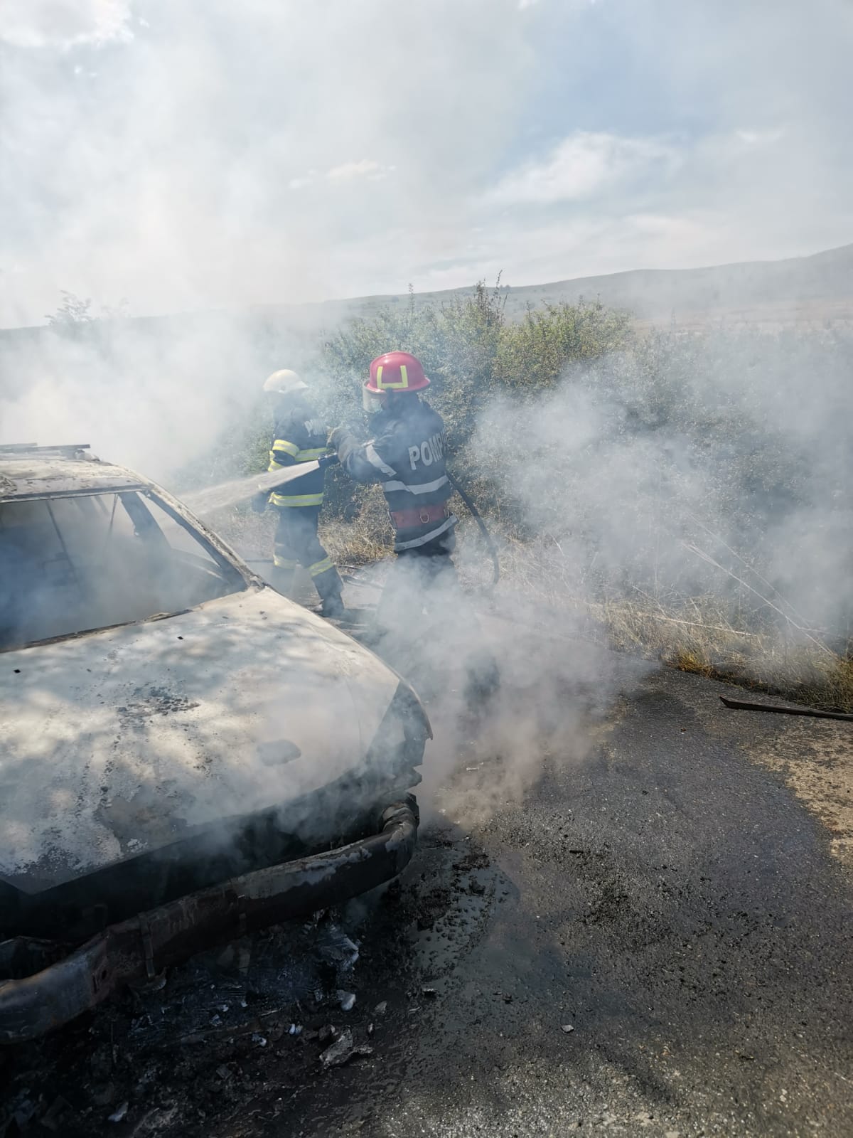 Incendiul a fost stins în scurt timp, însă deja autoturismul a era distrus aproape în totalitate de flăcări.