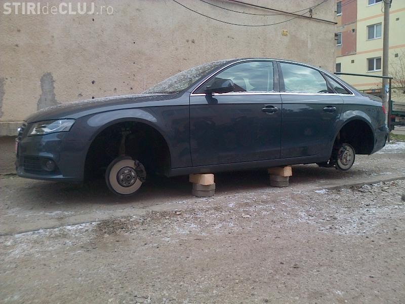 Proprietarul unei mașini de lux s-a trezit fără roțile la Turda.