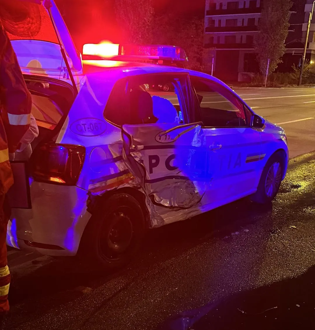 Mașină de poliție din Cluj, lovită de un șofer fugar! Până la urmă l-au ”parcat” în arest