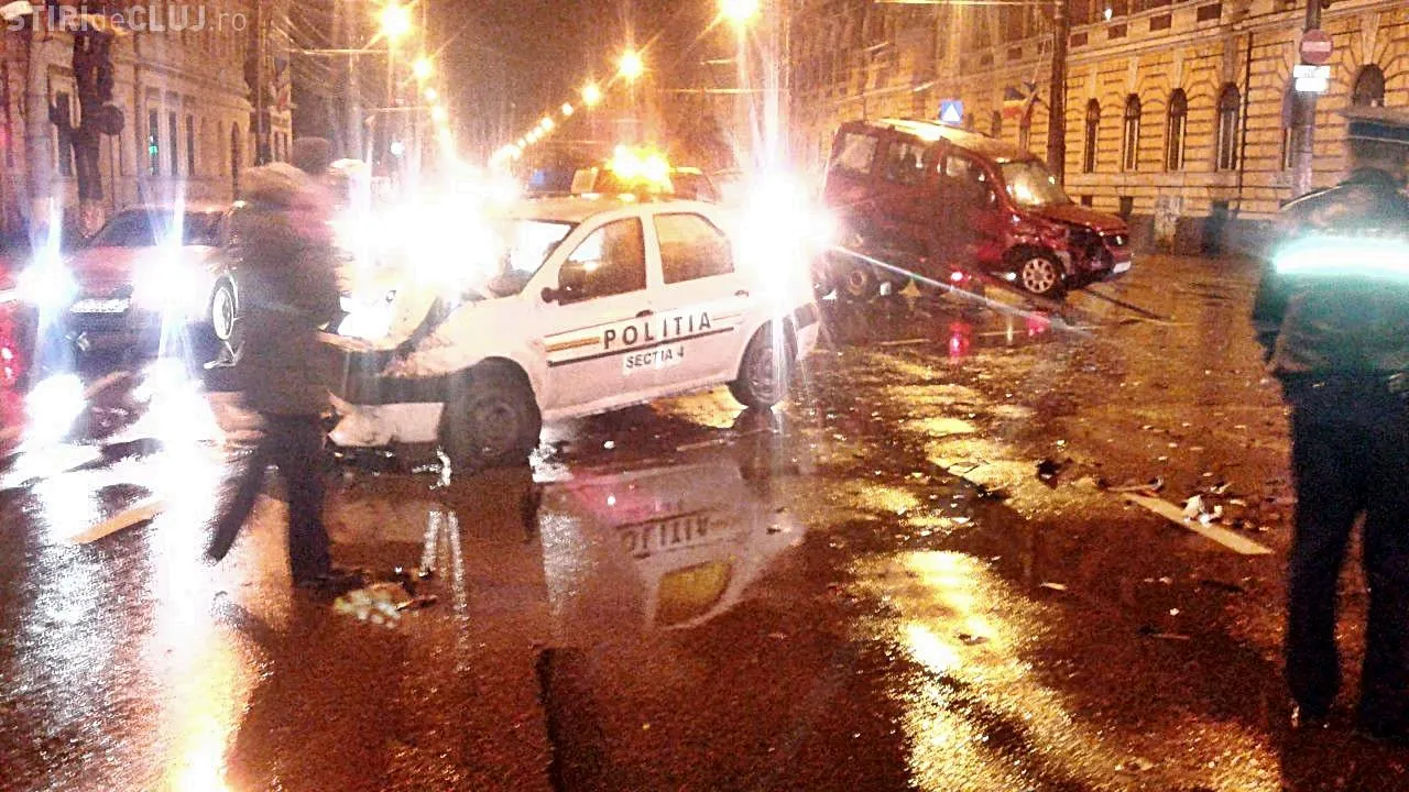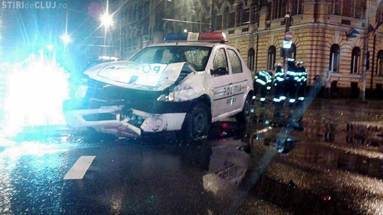 O mașină de poliție a fost implicată, duminică seara, în jurul orei 22.30, într-un accident de circulație la intersecția Bulevardul 21 Decembrie 1989 și Piața Avram Iancu.
