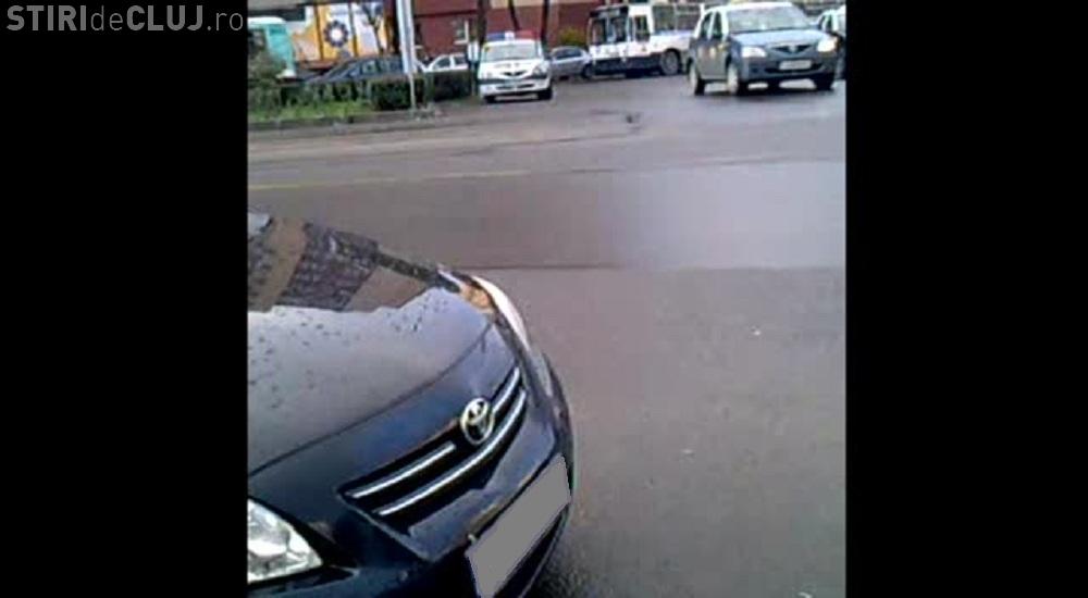 Un clujean a surprins o mașină de poliție parcată chiar în sensul giratoriu de la Union, din cartierul Mănăștur.