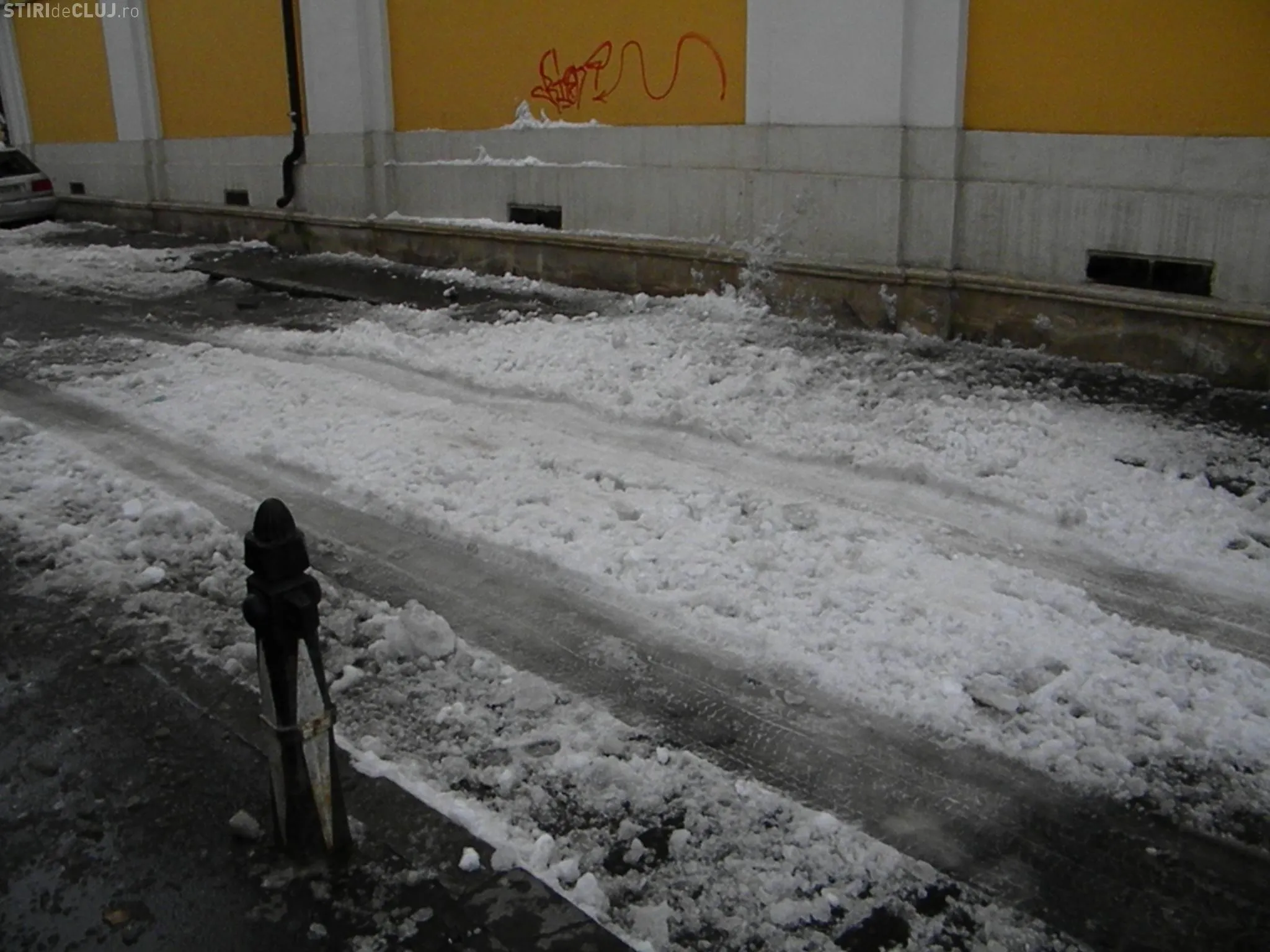 Masina distrusa de zapada in centrul Clujului FOTO si VIDEO EXCLUSIV