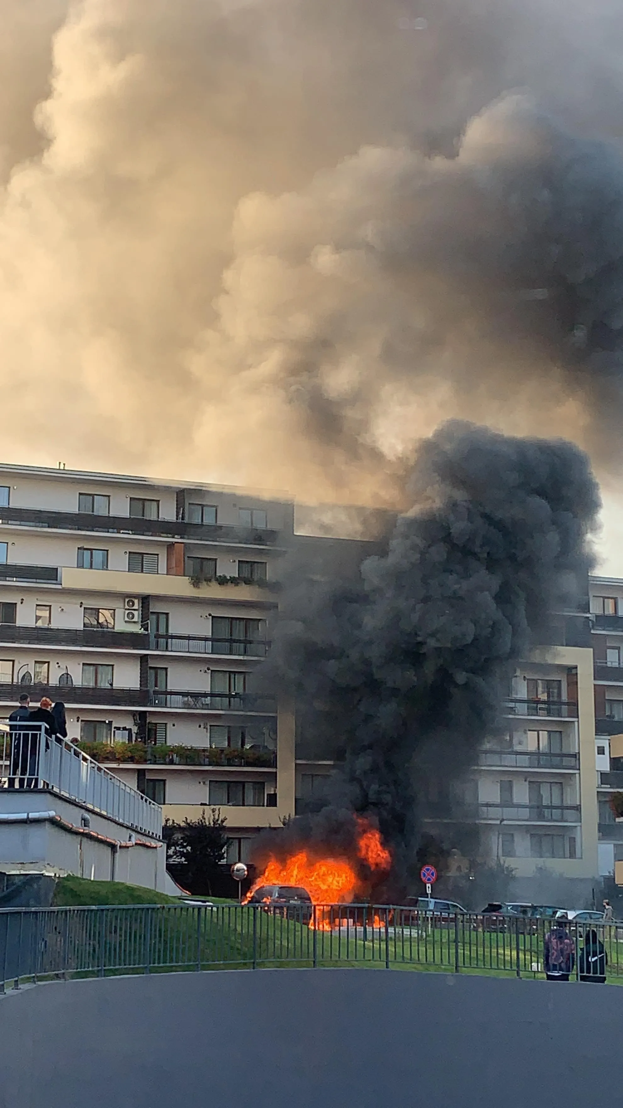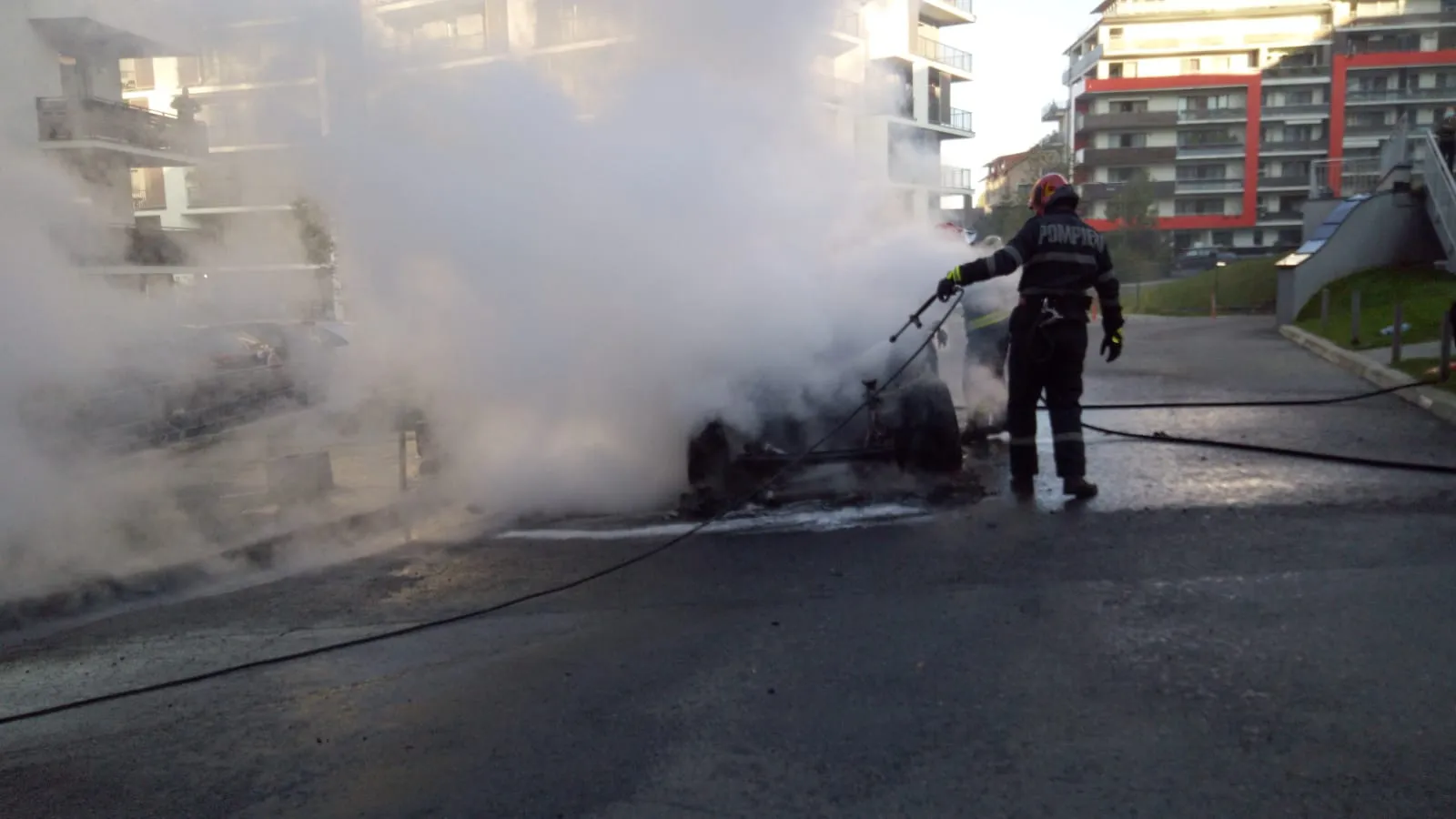 Un autoturism a fost mistuit de flăcări, marți după-amiază, în cartierul clujean Bună Ziua.