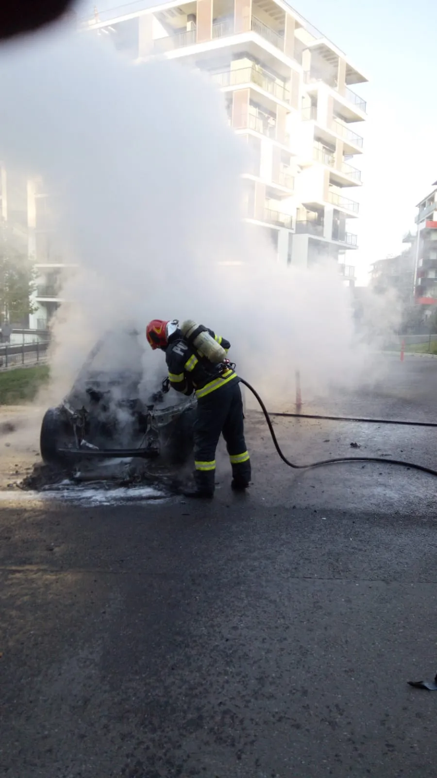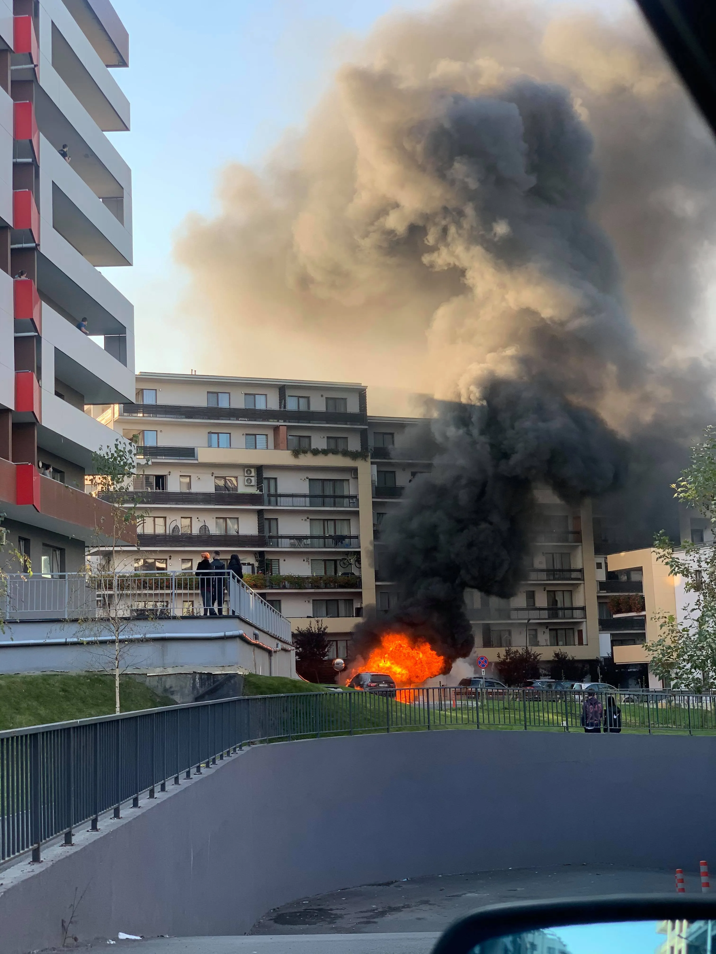Mașina făcută scrum în cartierul Bună Ziua. Pompierii au acționat rapid FOTO