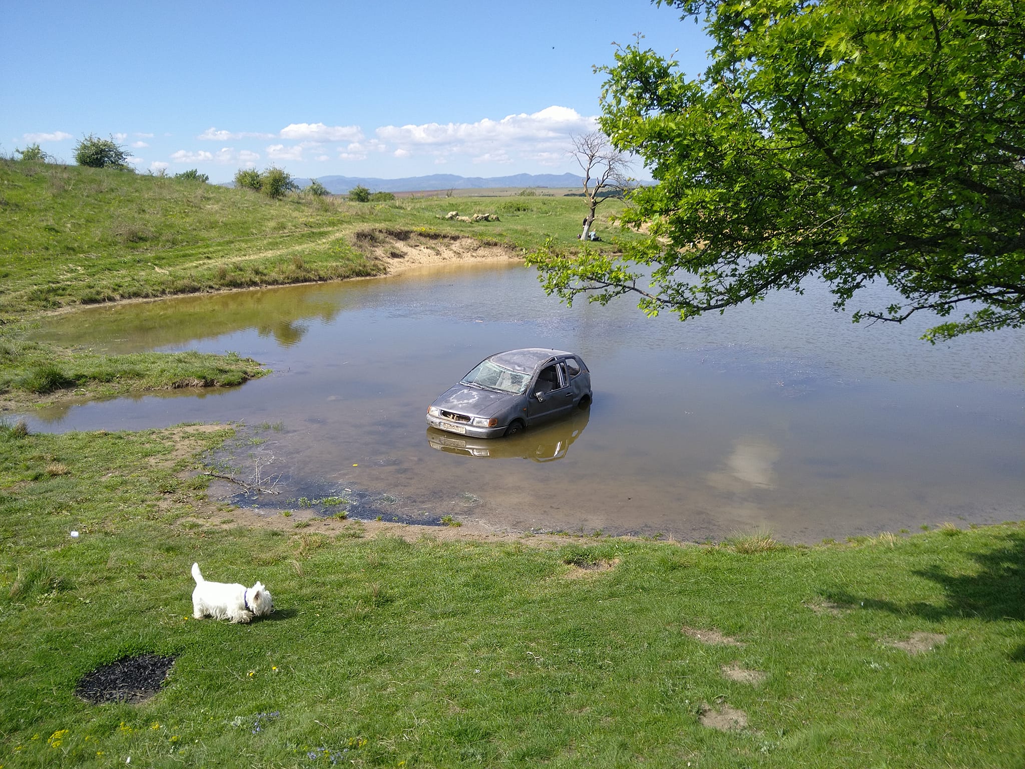 O fotografie cu o mașină ”parcată” într-un lac a apărut pe un grup de trafic din Cluj-Napoca. Se pare că este vorba despre un lac mic din Sălicea, comuna Ciurila.