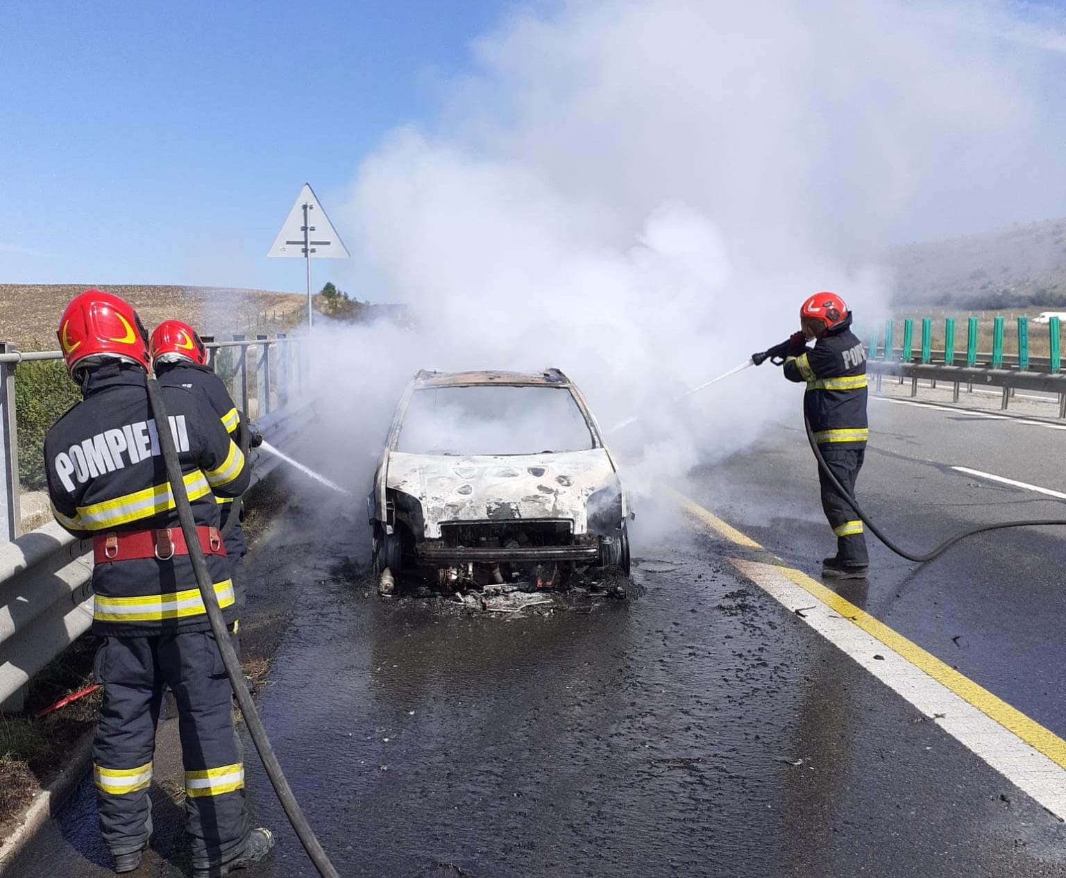 O mașină a luat foc duminică după-amiază pe Autostrada Transilvania. Din fericire, nicio persoană nu a fost rănită.