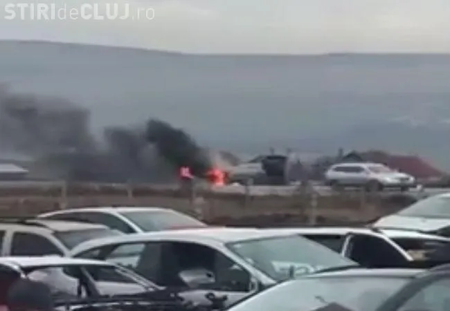 Mașină în flăcări, pe drumul Turda-Cluj VIDEO