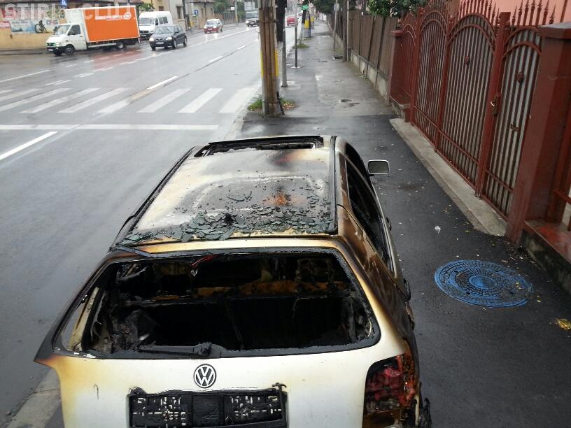 Mașina incendiată pe Traian Vuia, abandonată pe marginea drumului - FOTO
