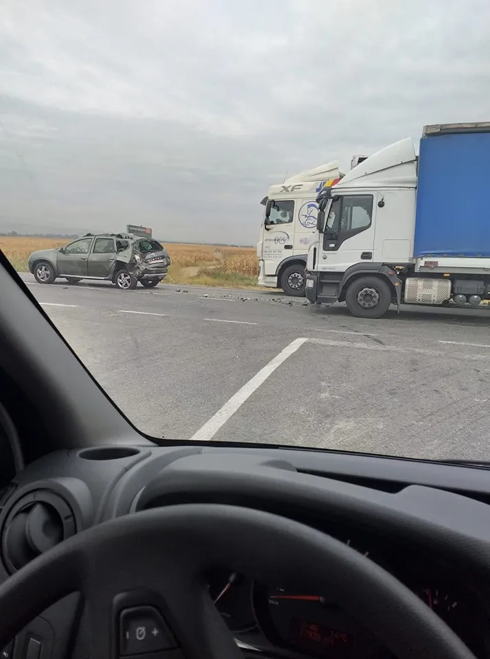 Din primele informații, un autoturism ar fi fost lovit de un TIR.