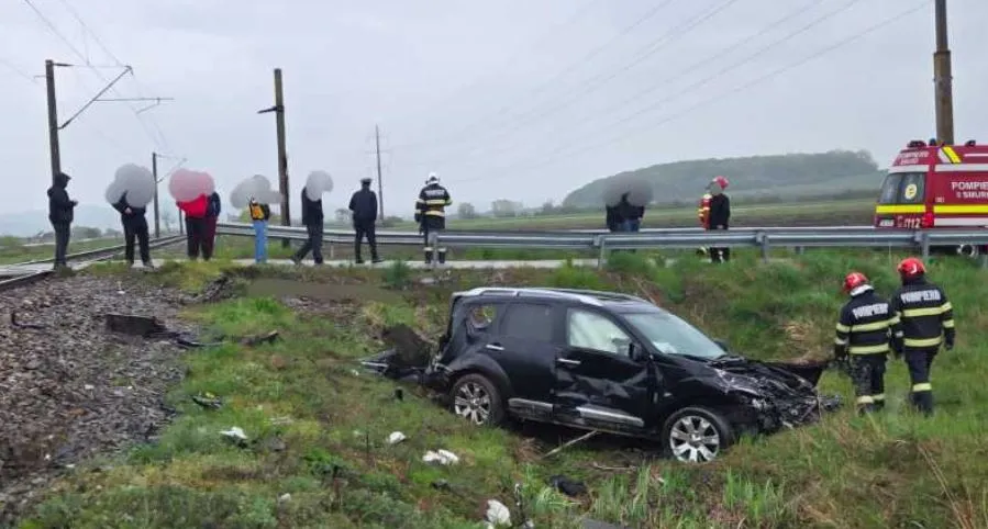 Mașină lovită de trenul Cluj-Bistrița, în care se aflau 100 de călători. Șoferul a fost transportat la urgență
