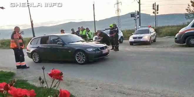 Pe bancheta din spate a mașinii se afla o persoană inconștientă, care a fost preluată de un echipaj medical de ambulanță și transportată la spital, scrie Gherla Info.