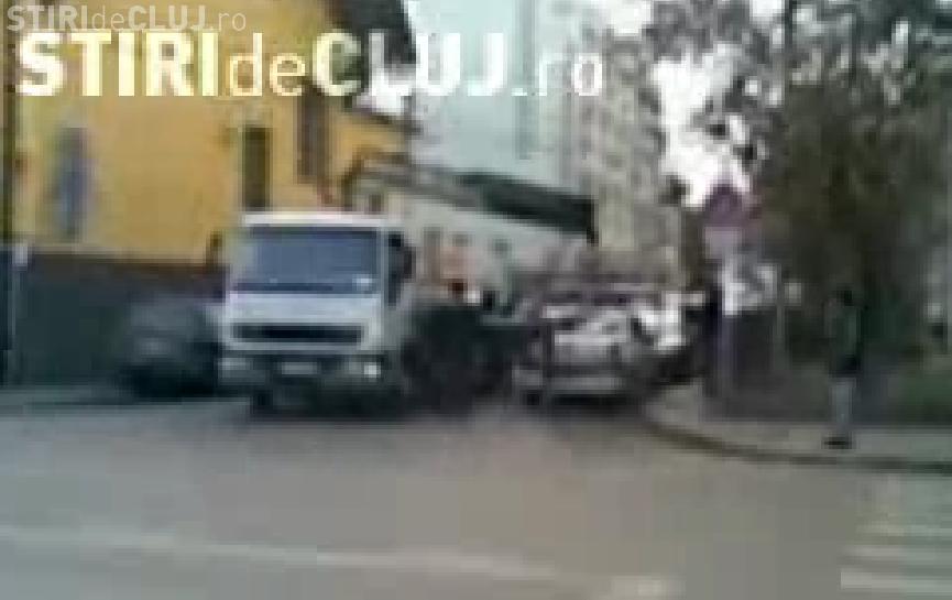 Un clujean a filmat cu un telefon mobil cum este ridicata o masina a Politiei Cluj chiar din fata sediului - VIDEO
