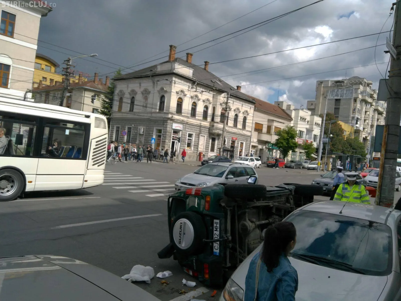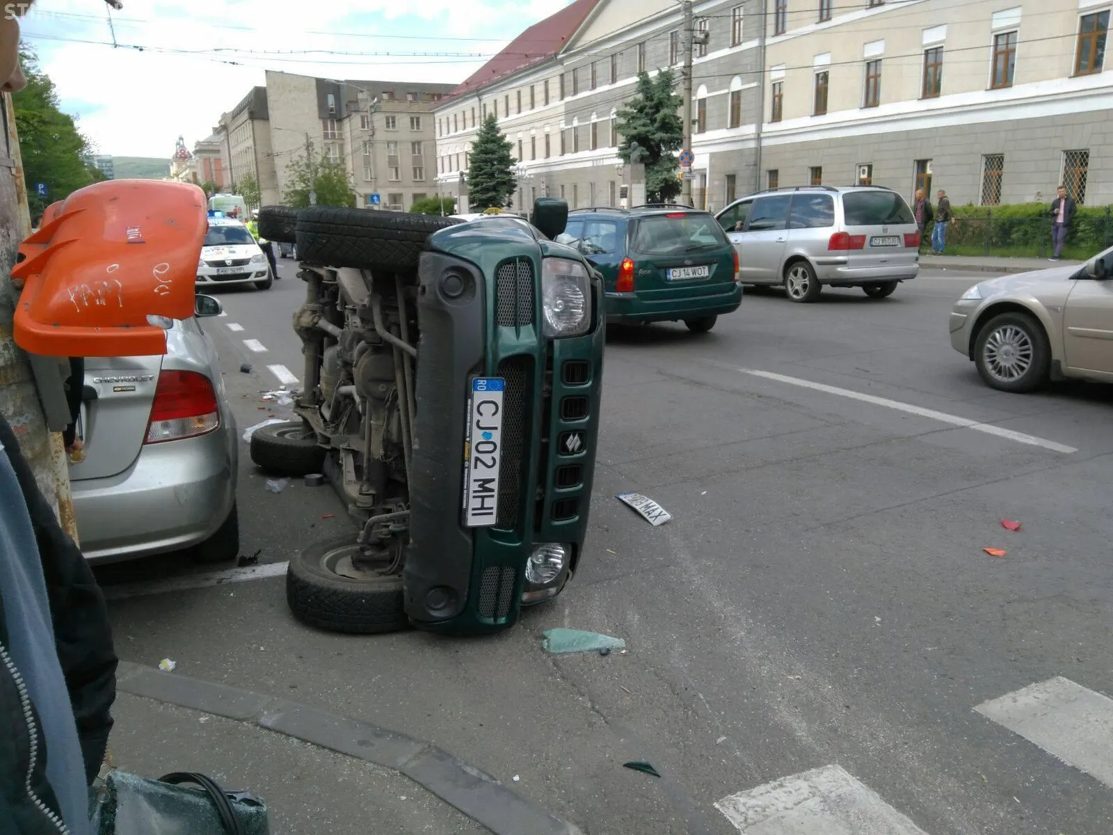 ”Conform primelor cercetări, un conducător auto, la ieșirea dintr-uzonă de staționare destinată taximetrelor, nu ar fi acordat prioritate unui autoturism care circula dinspre cartierul Gheorgheni, intrând în coliziune cu acesta. În urma impactului, un autoturism s-a răsturnat și a surprins și acroșat două persoane care se aflau în zona unei treceri de pietoni. Cele două persoane, cât și șoferul autoturismului răsturnat au fost transportați la UPU pentru îngrijiri medicale. Ambii conducători auto au fost testați cu aparatul etilotest, reieșind că nu au consumat băuturi alcoolice”, a declarat purtătorul de cuvânt al IPJ Cluj.