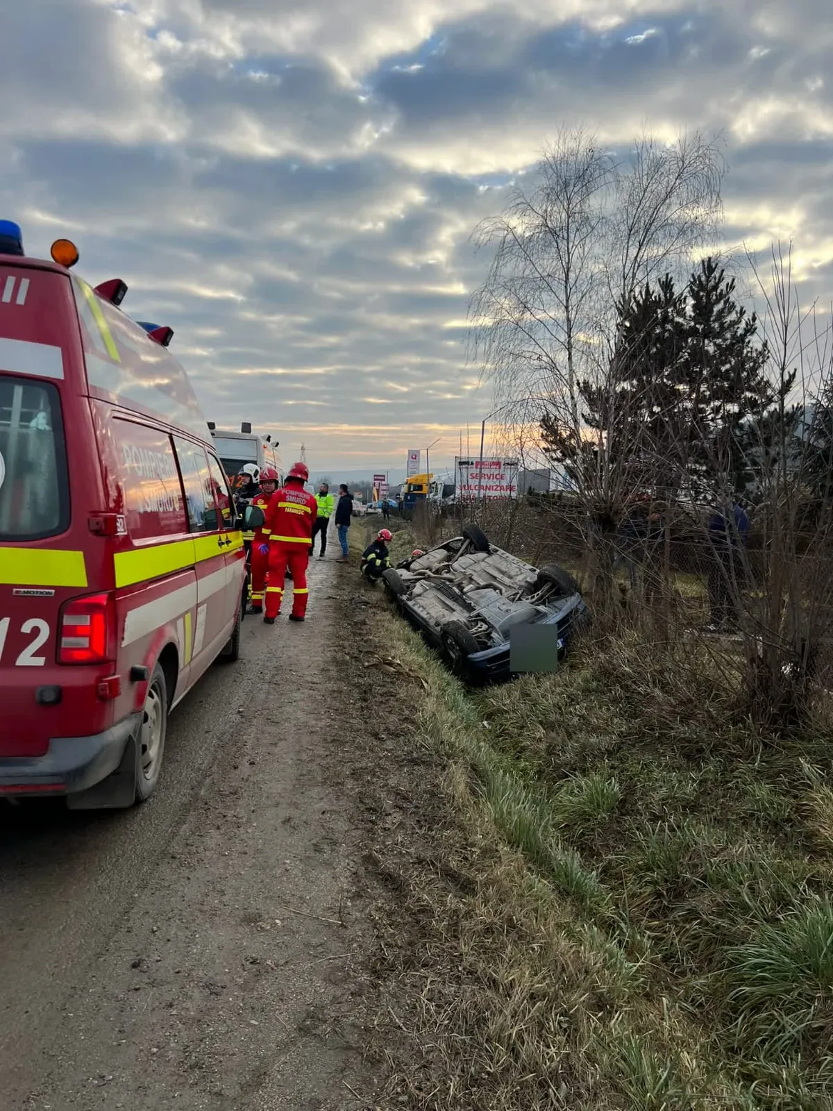 În accident a fost implicat un singur autoturism, care era răsturnat. Nu au existat persoane încarcerate, însă o femeie de 70 de ani a necesitat îngrijiri medicale. La o primă evaluare, aceasta a suferit un traumatism cranian minor, fiind transportată la spital.