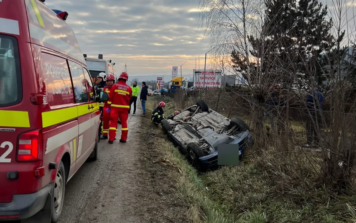 Un autoturism s-a răsturnat în localitatea Răscruci, pe DN 1C, în urma unui accident de circulație petrecut marți, 3 ianuarie.