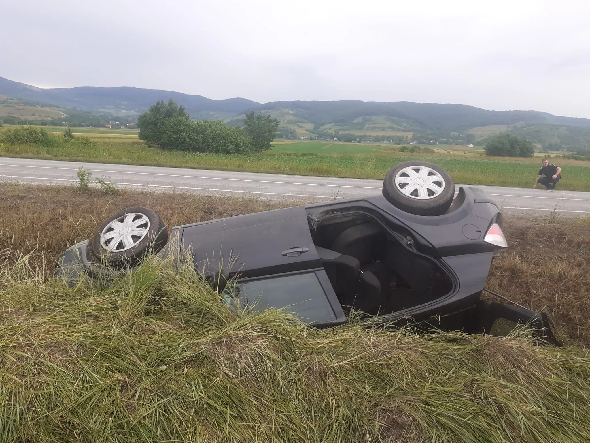 O șoferiță s-a răsturnat cu mașina lângă dej, în localitatea Câțcău.