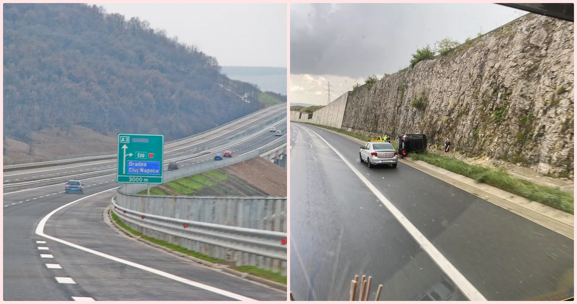 Un accident de circulație s-a produs pe Autostrada Transilvania, unde un șofer s-a răsturnat din cauza vitezei excevise.