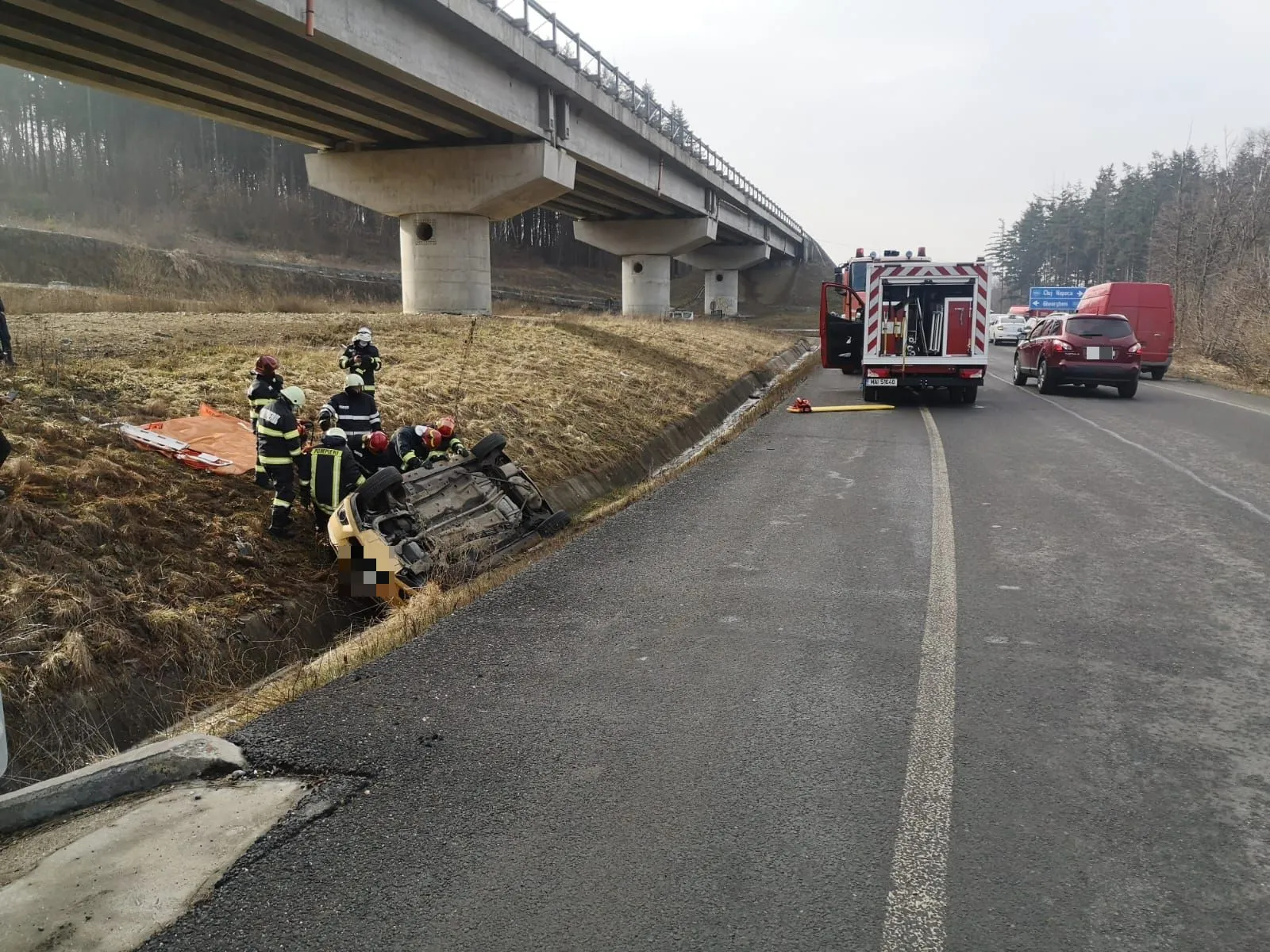Două autospeciale cu modul de descarcerare și un echipaj SMURD au fost dislocate la locul accidentului. Pompierii au găsit autoturismul răsturnat pe plafon în canalul pentru colectarea apelor pluviale de pe marginea carosabilului, iar înăuntrul autovehiculului se afla încarcerată o femeie, care suferise multiple traumatisme, era în stare de conștiență, dar confuză, și avea capul prin între tetieră și scaunul autovehiculului.