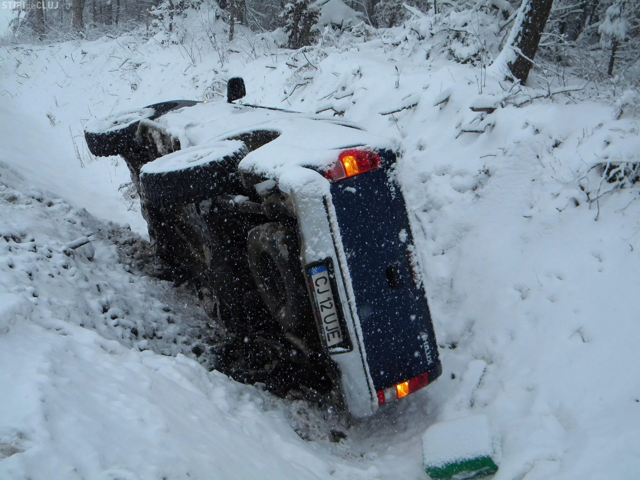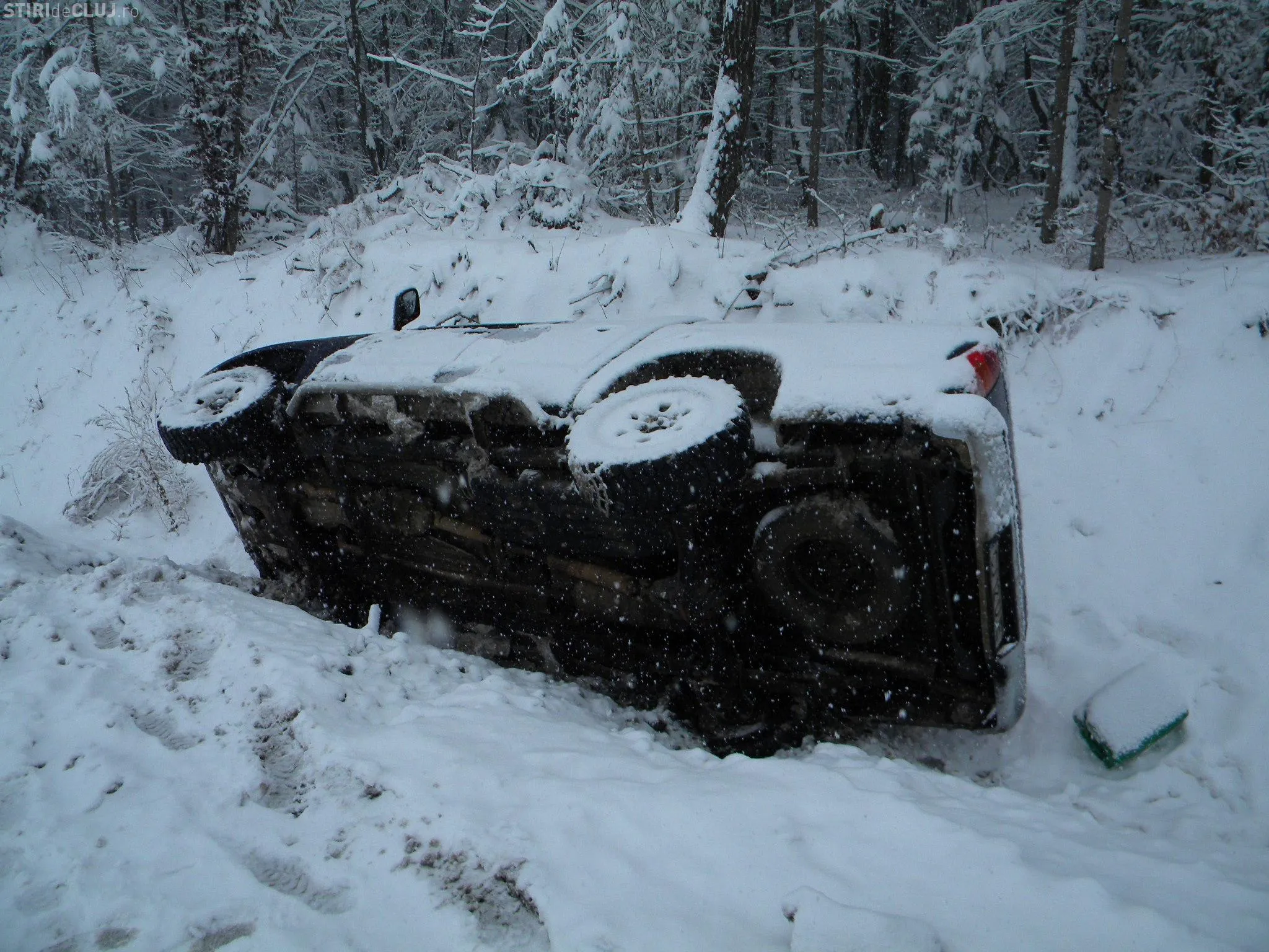 O masina de teren care apartine Directiei Regionala de Drumuri si Poduri s-a rasturnat pe centura Valcele-Apahida.