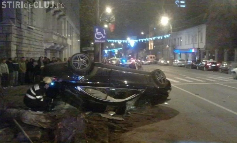 Accidentul s-a produs pe fondul vitezei, mașina răsturnându-se lângă Tribunalul Cluj.