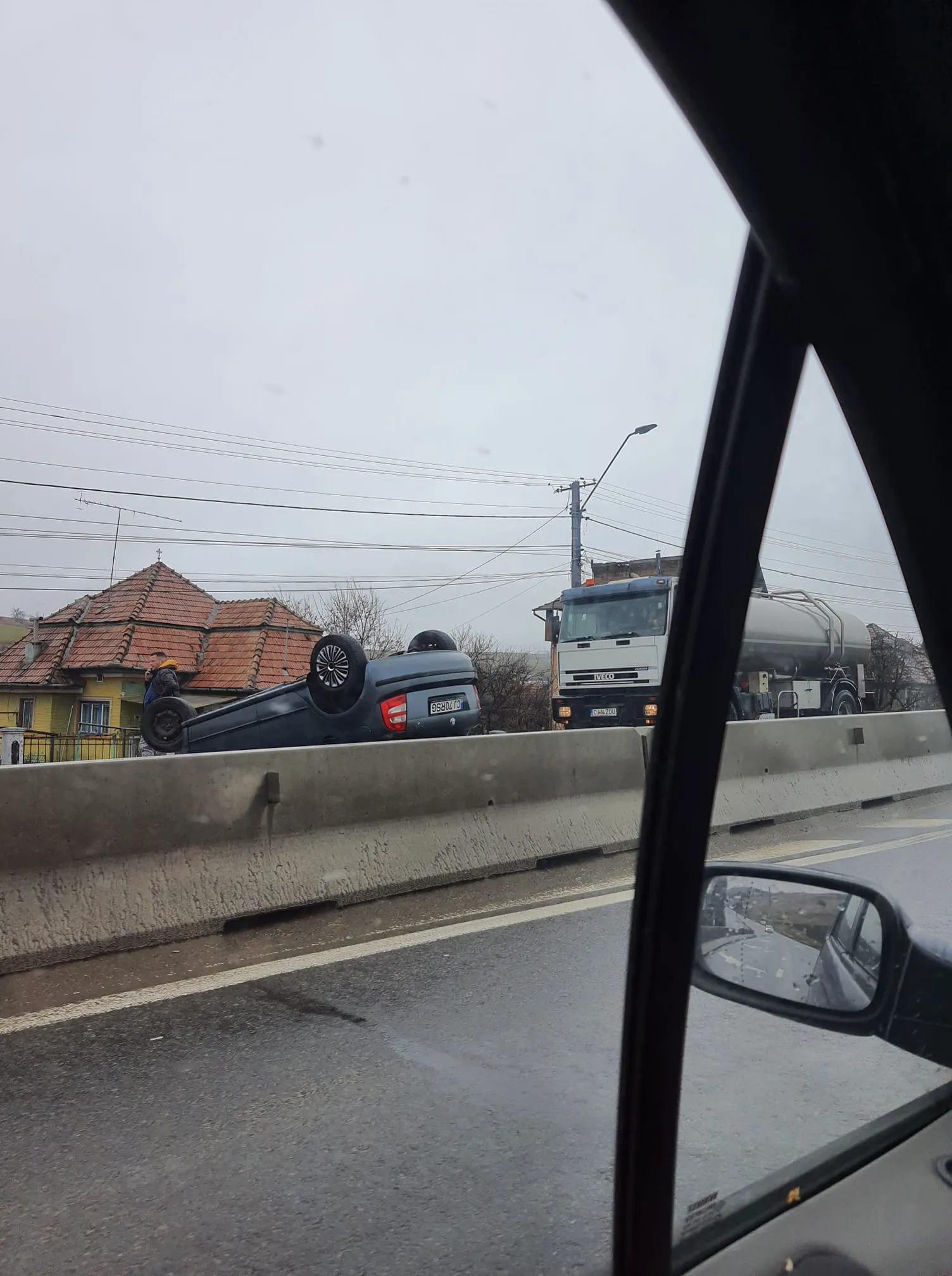 Mașină răsturnată pe drumul Cluj - Turda - FOTO