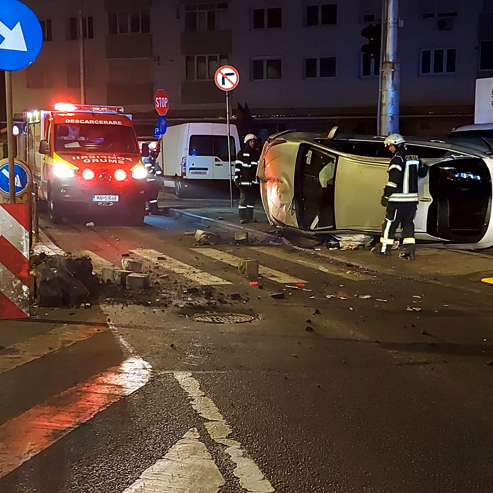 Mașină răsturnată pe strada Oașului din Cluj-Napoca. Șoferul a ajuns la spital - FOTO