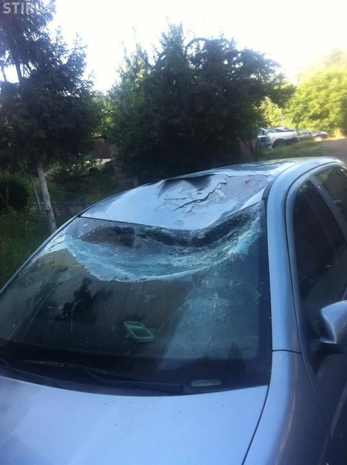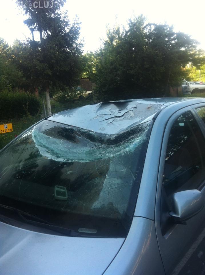 Mașina unei clujence a fost distrusă de un pepene aruncat de la etaj - FOTO
