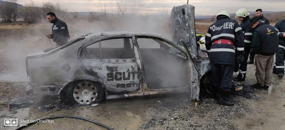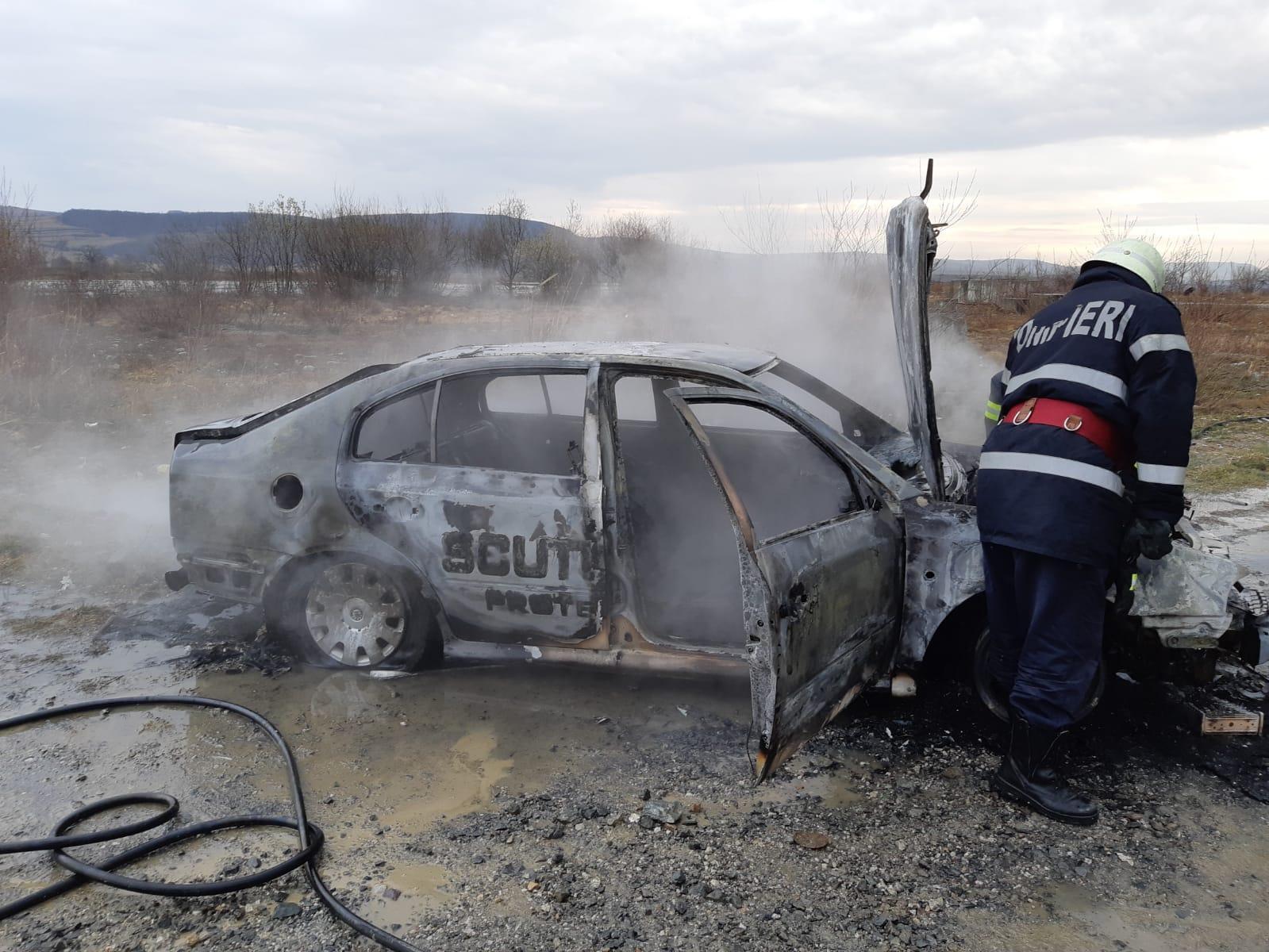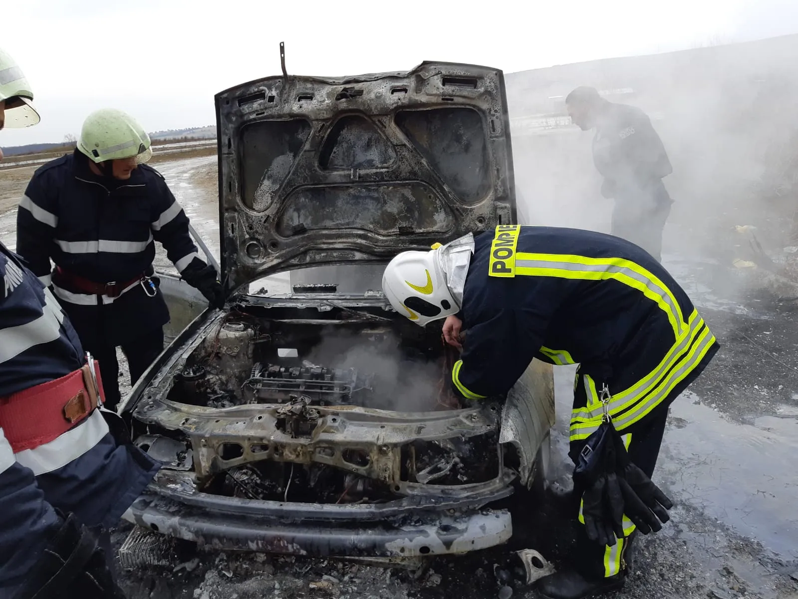La fața locului s-au deplasat echipaje al Pompierilor, însă autoturismul a fost ars complet.