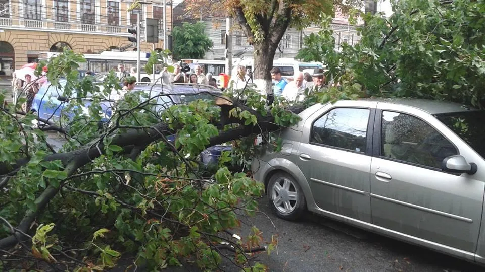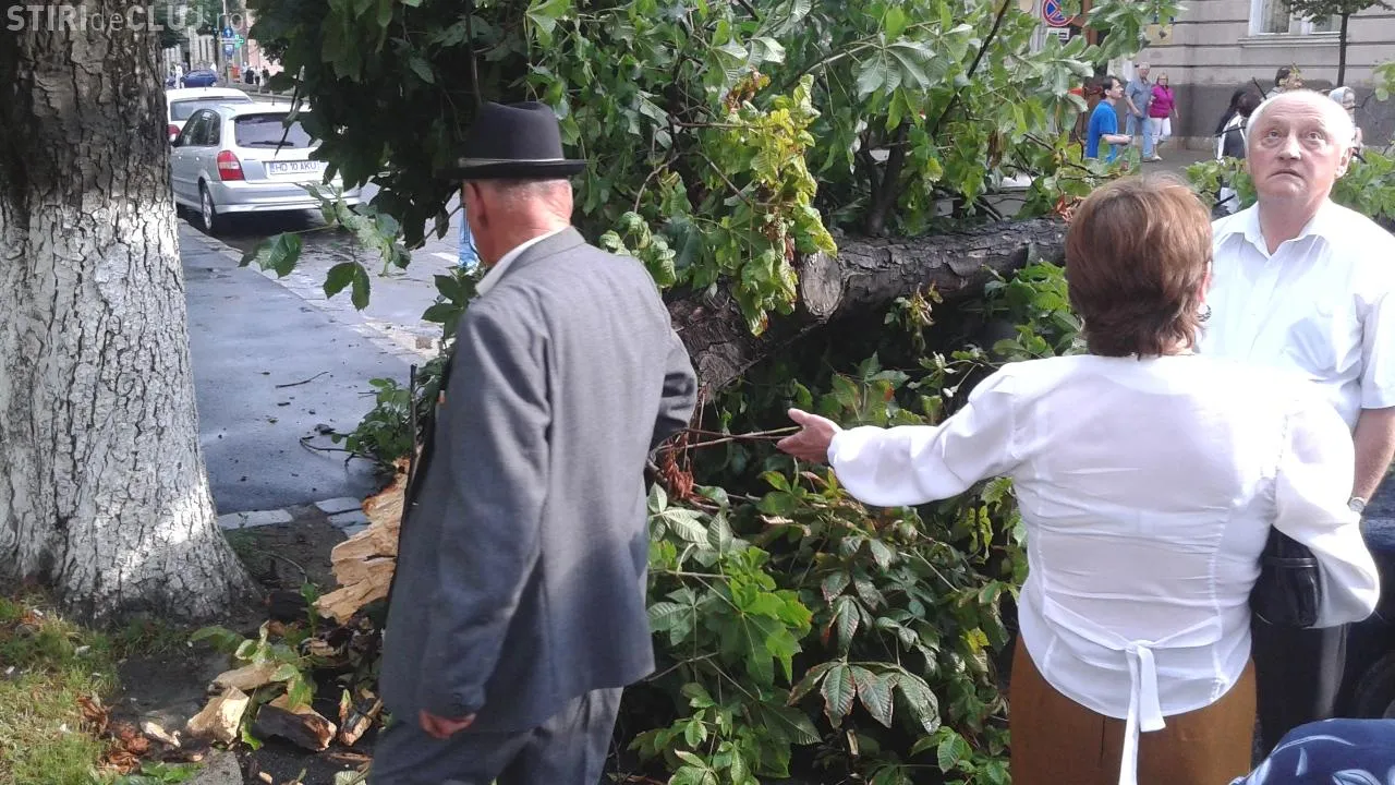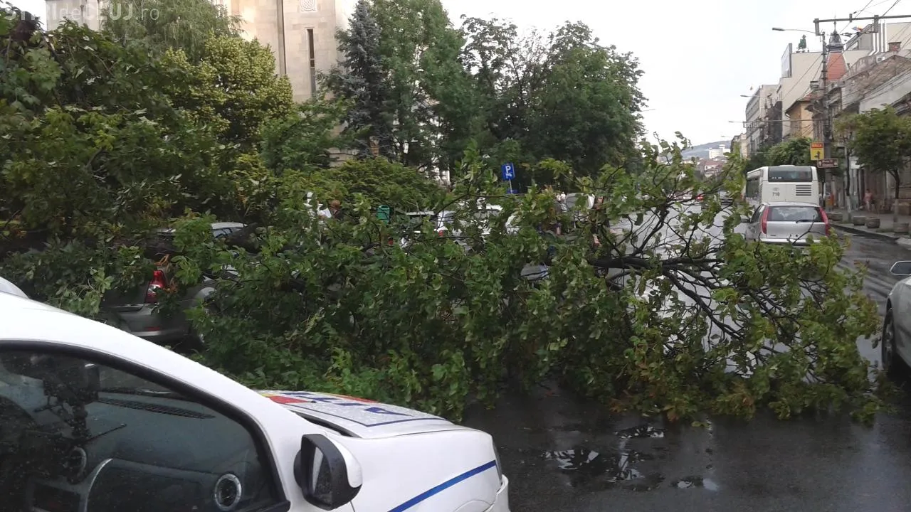 Un copac a căzut peste o mașină parcată lângă Prefectura Cluj, fără a fi nimeni rănit.