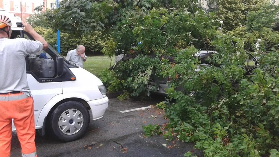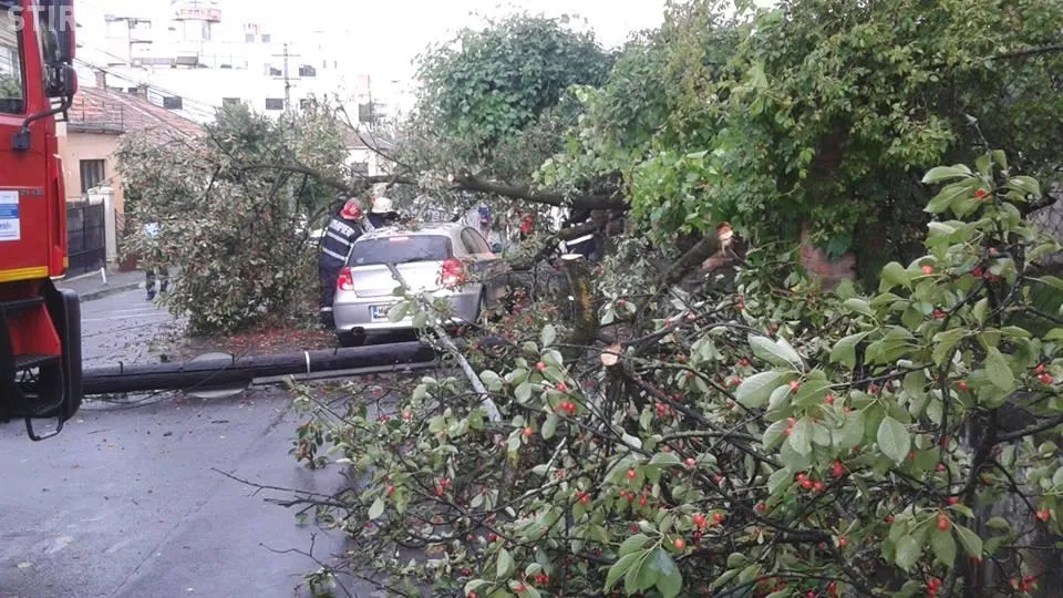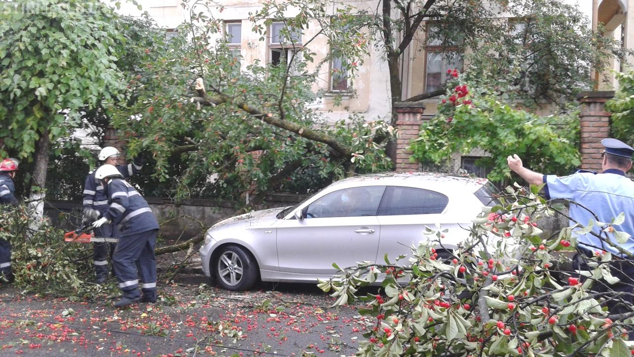 Două mașini au fost avariate de copaci căzuți în urma furtunii de duminică.