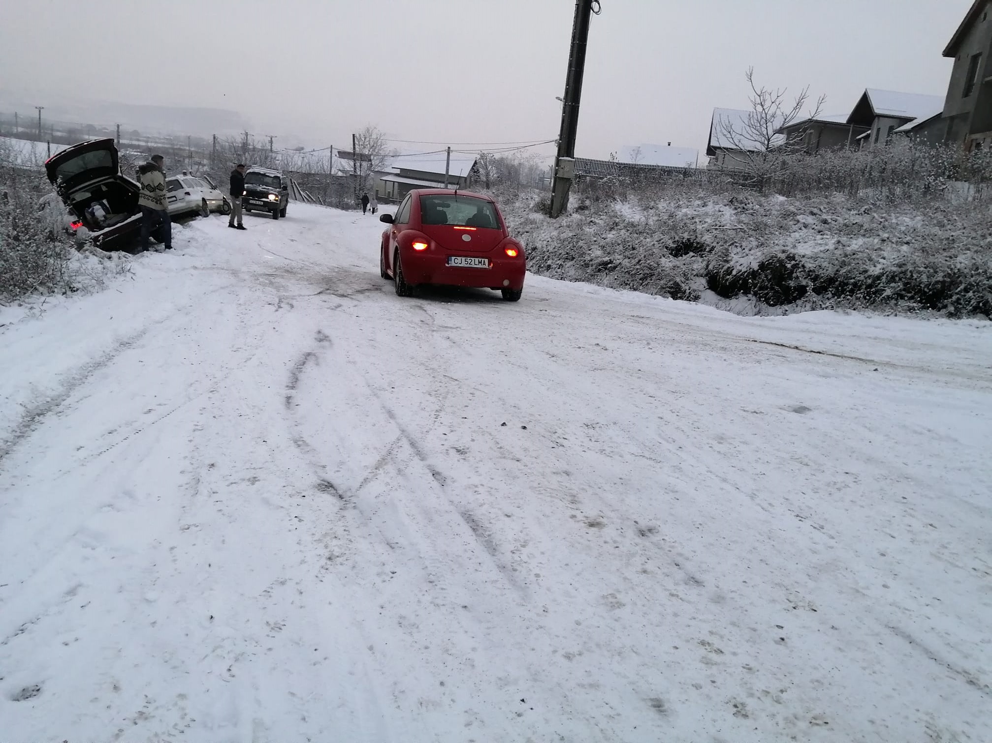 Clujenii care locuiesc în Câmpenești au avut experiențe crunte luni dimineața, când mașinile au mers ca săniile pe drumul care duce la șoseaua națională.