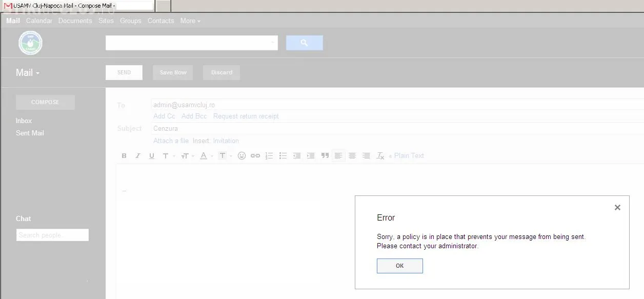 "In ziua alegerilor, mailul USAMV Cluj a fost cenzurat de catre departamentul informatic... Secolul 21?", ne-a scris un angajat al USAMV Cluj.