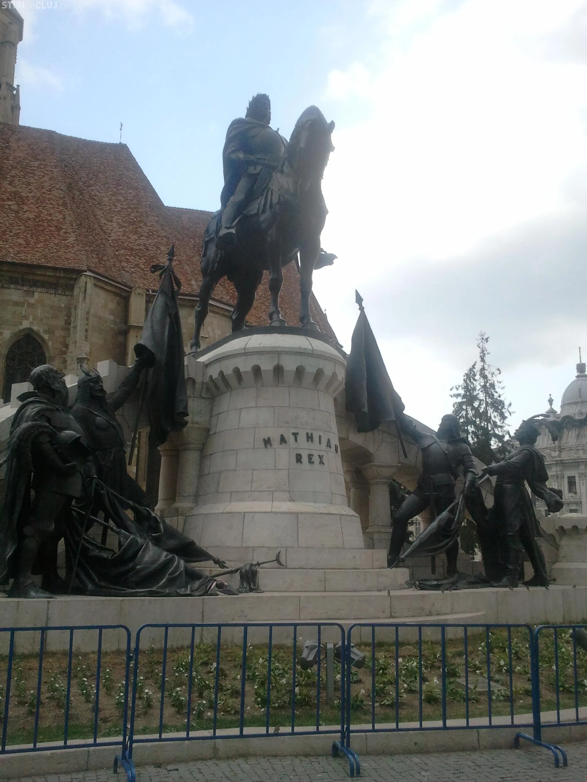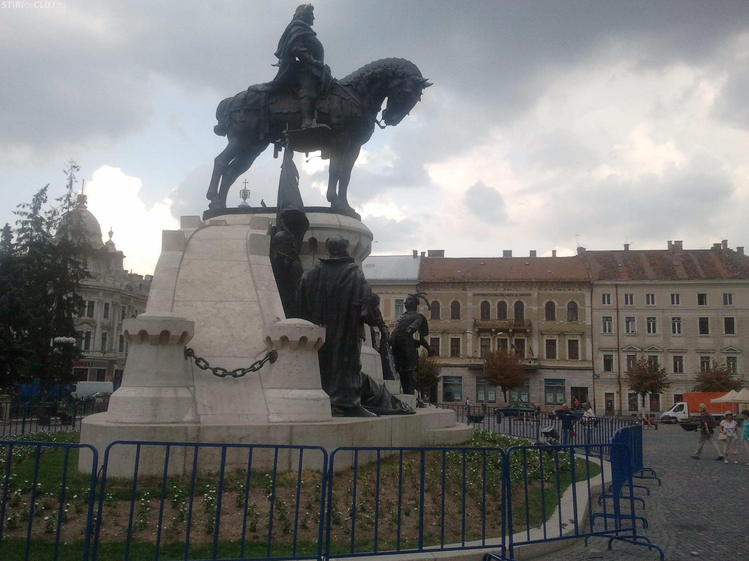 Măsuri extreme pentru protejarea lui Matei Corvin. De ce s-au pus garduri în jurul statuii - FOTO
