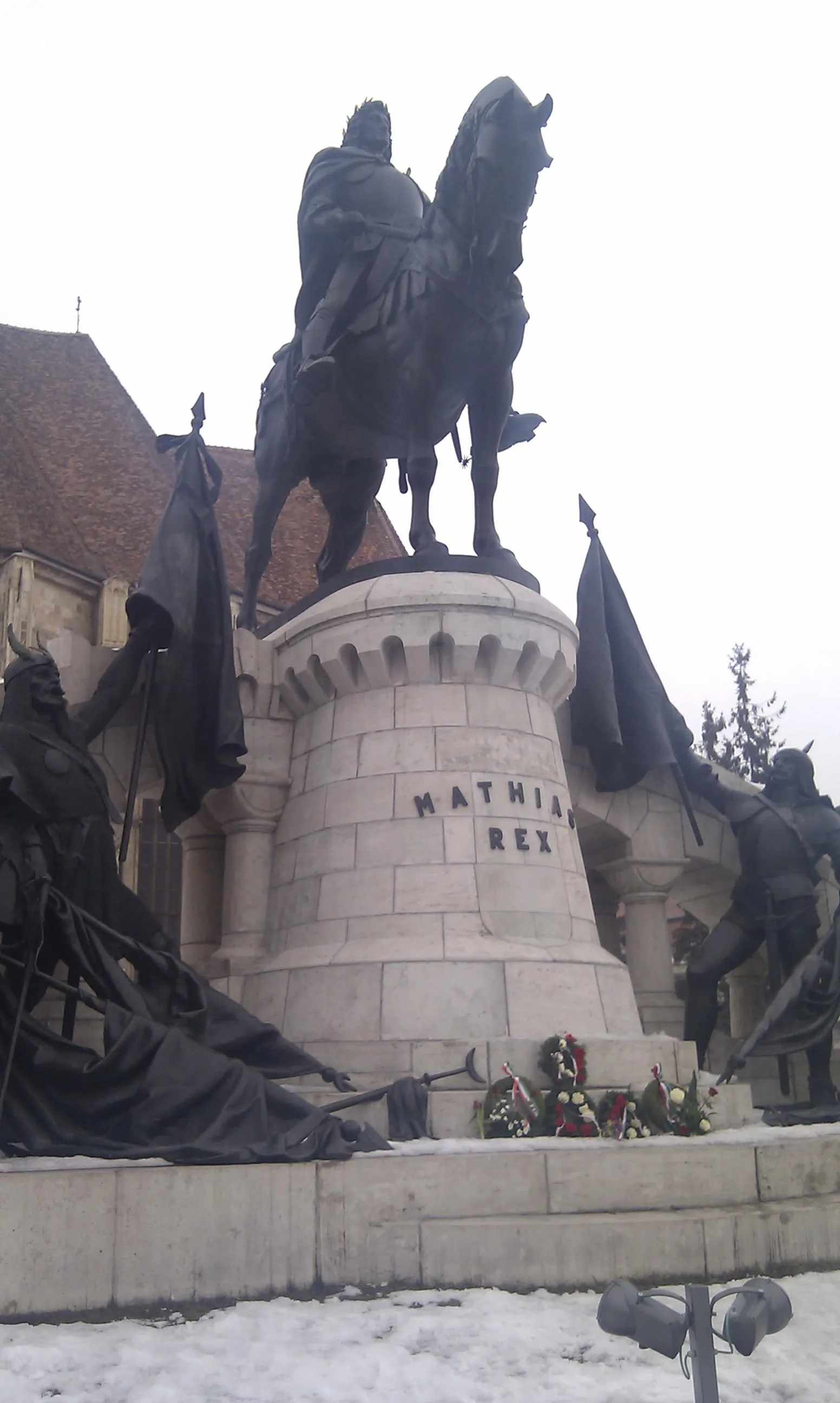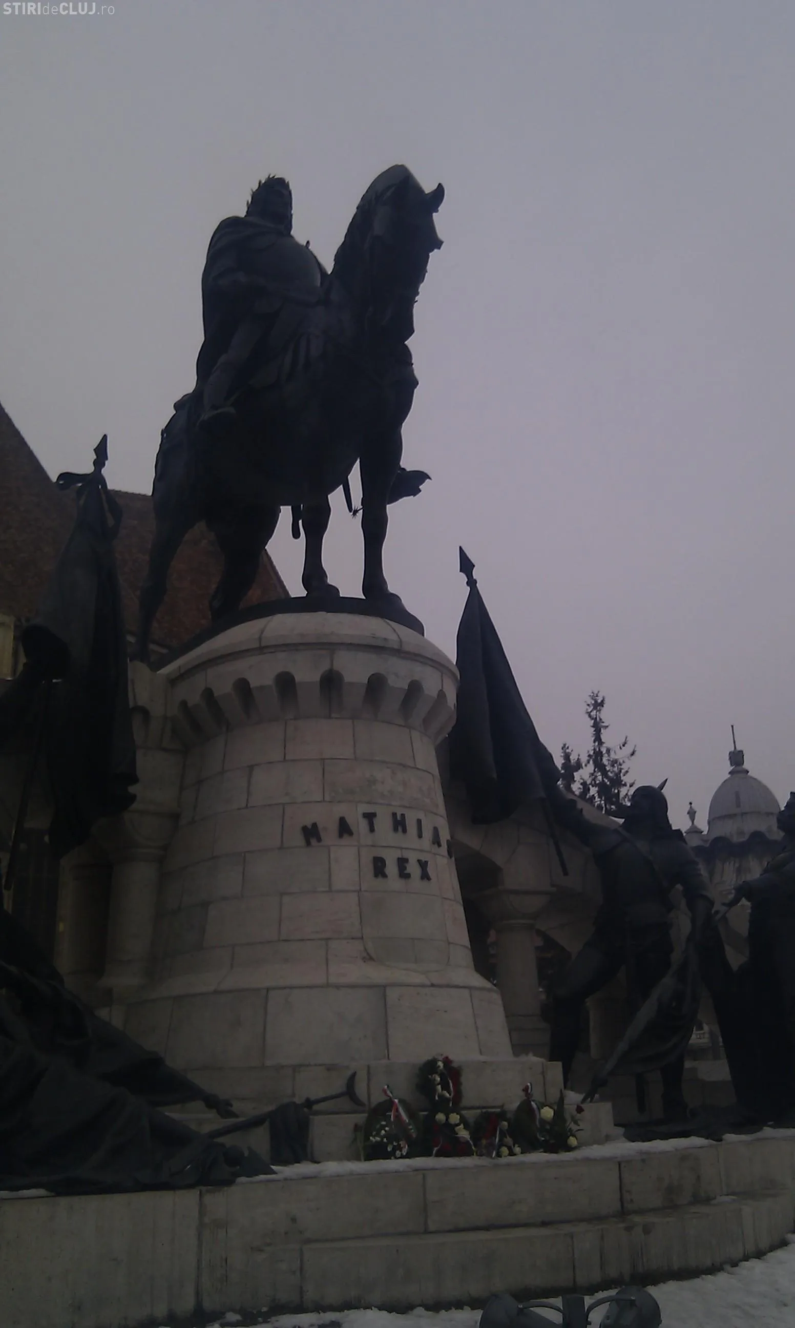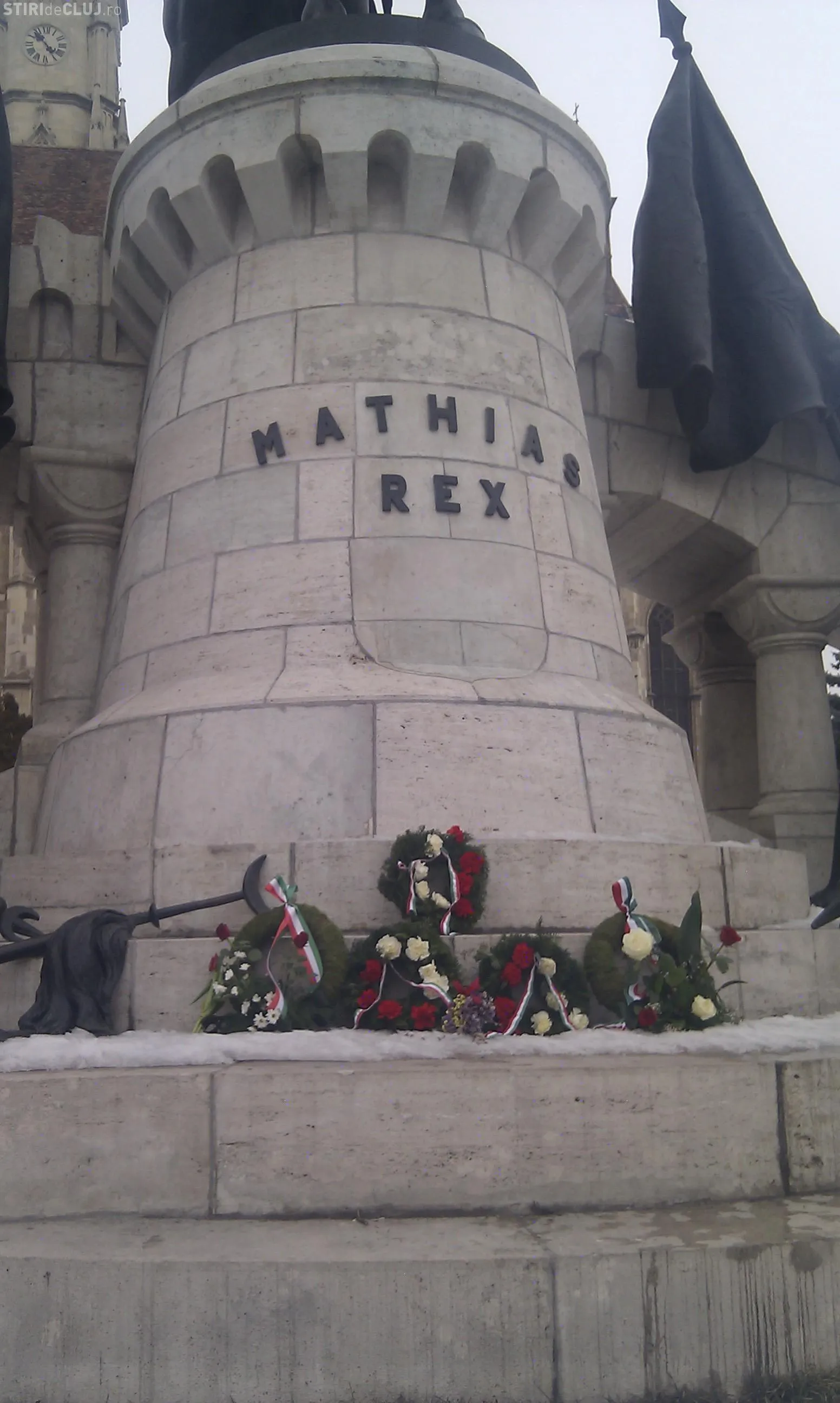 Matei Corvin, aniversat de maghiari in Piata Unirii cu jerbe de flori FOTO