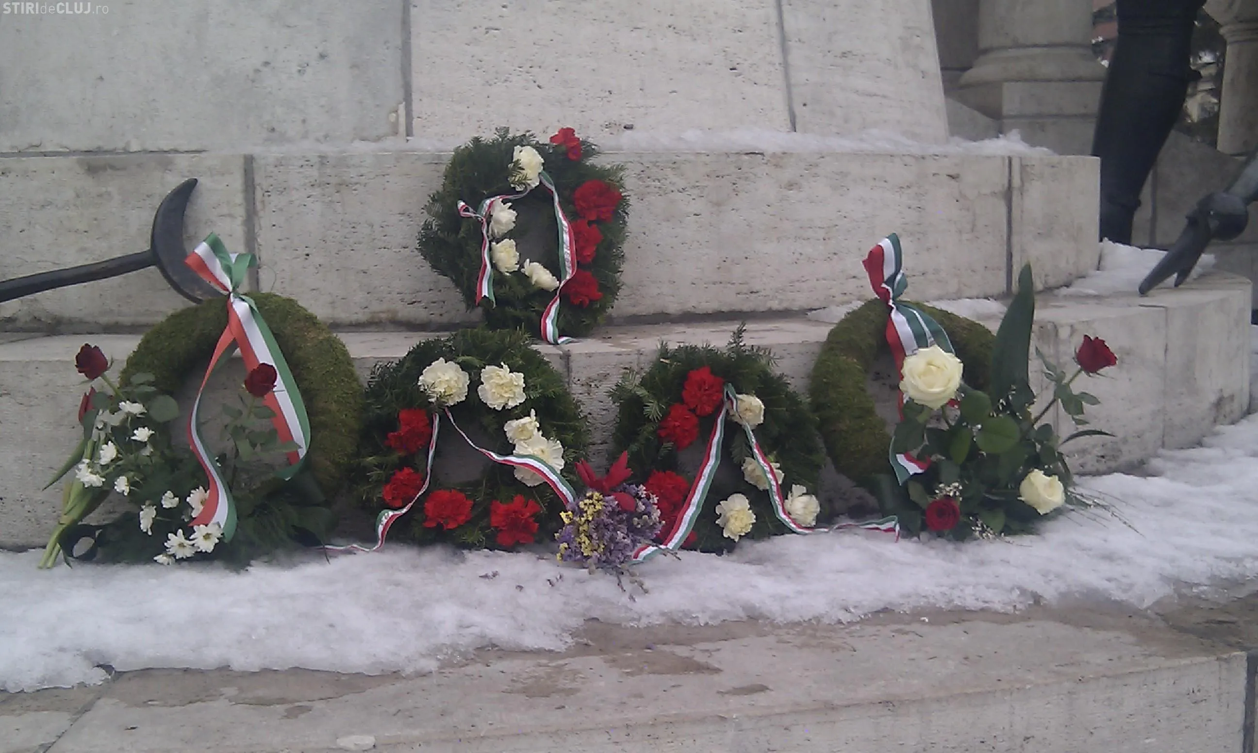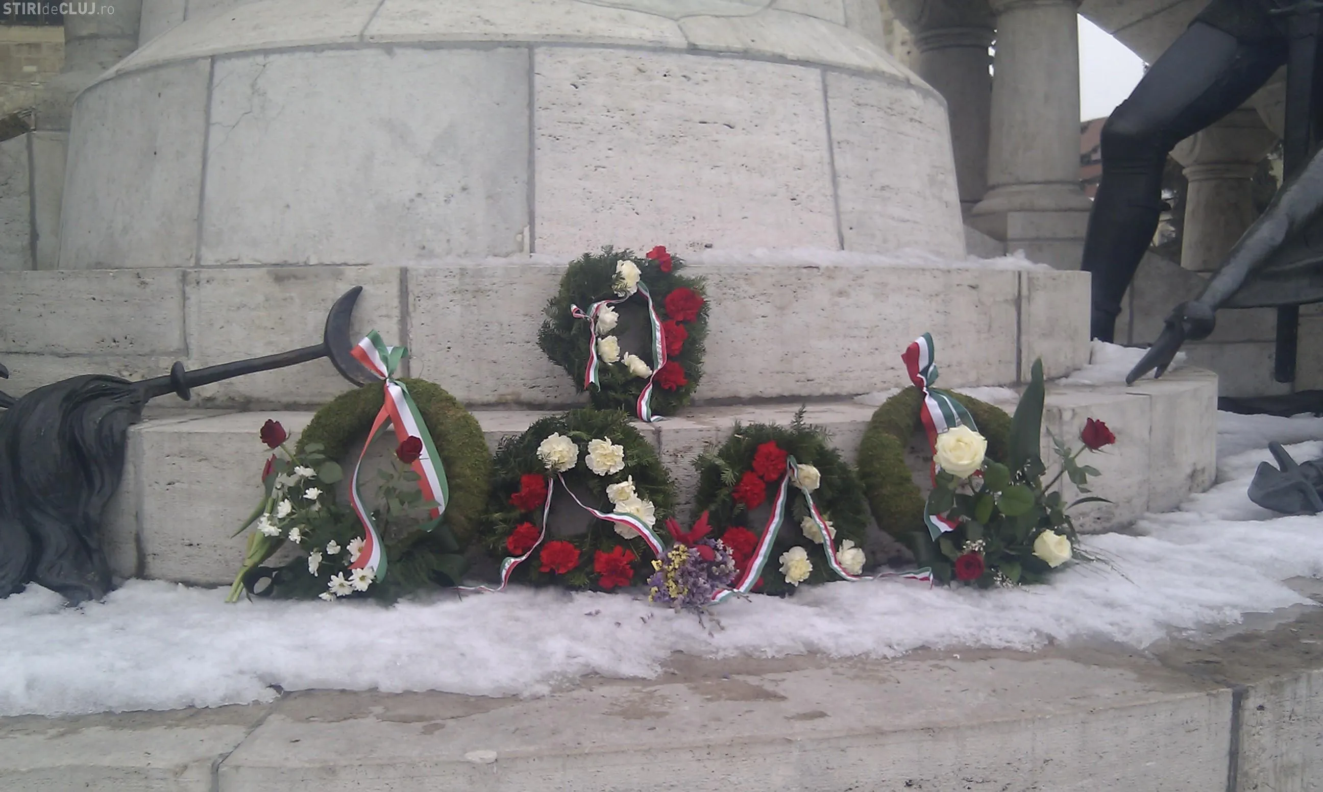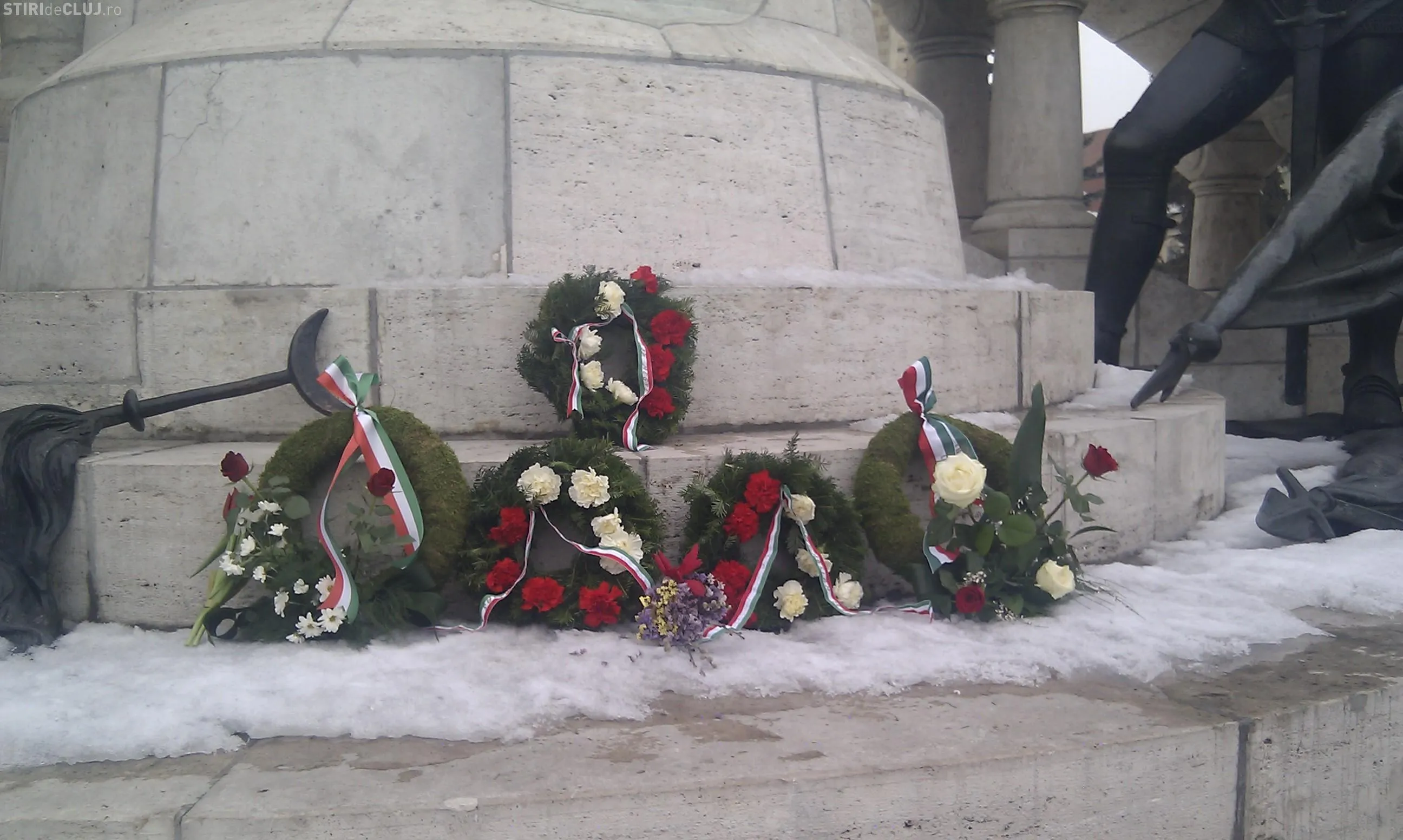 "Este o ceremonie importanta la care s-au strans circa 150 de persoane. Au fost depuse jerbe de flori la grupul statuar", a declarat viceprimarul Clujului, Laszlo Attila.